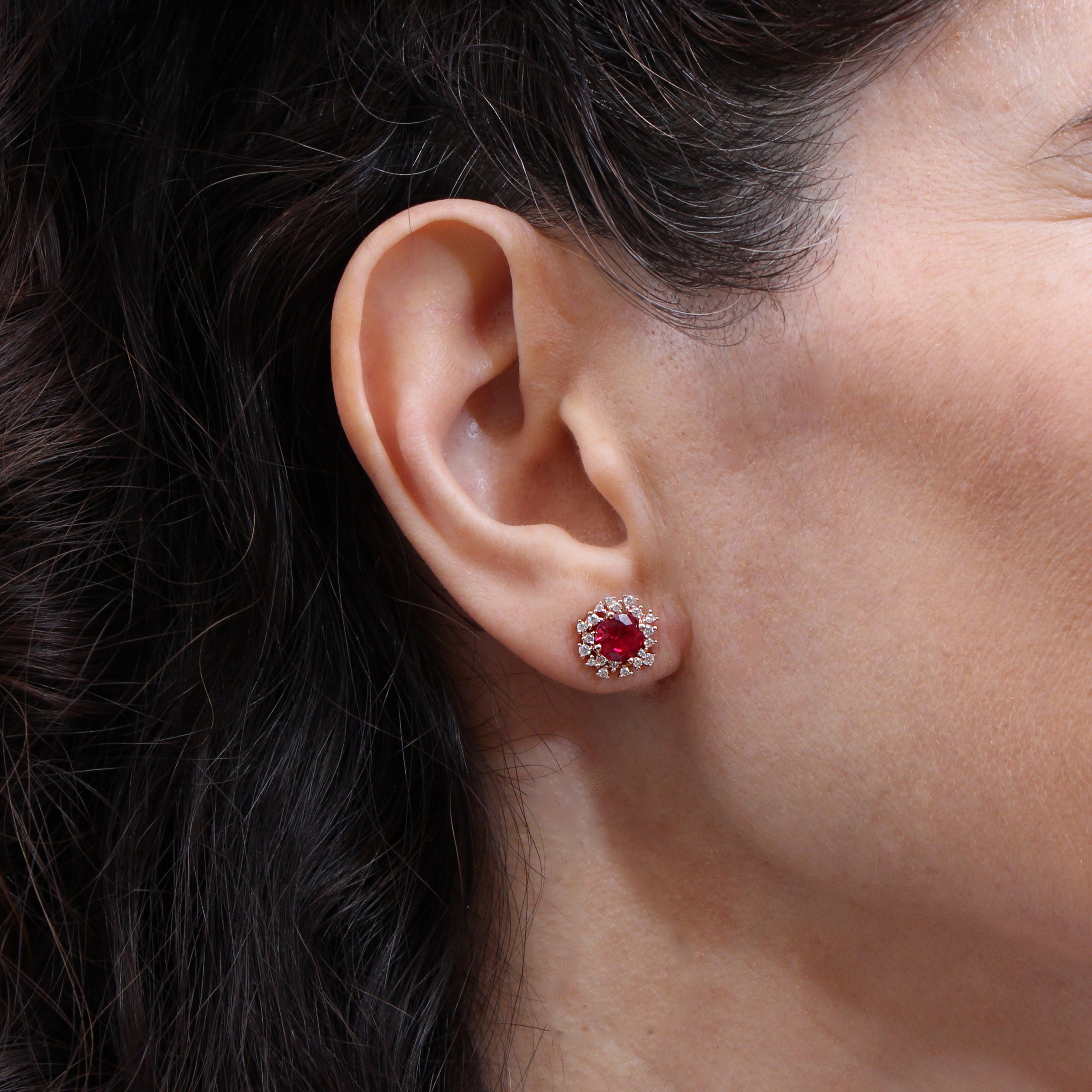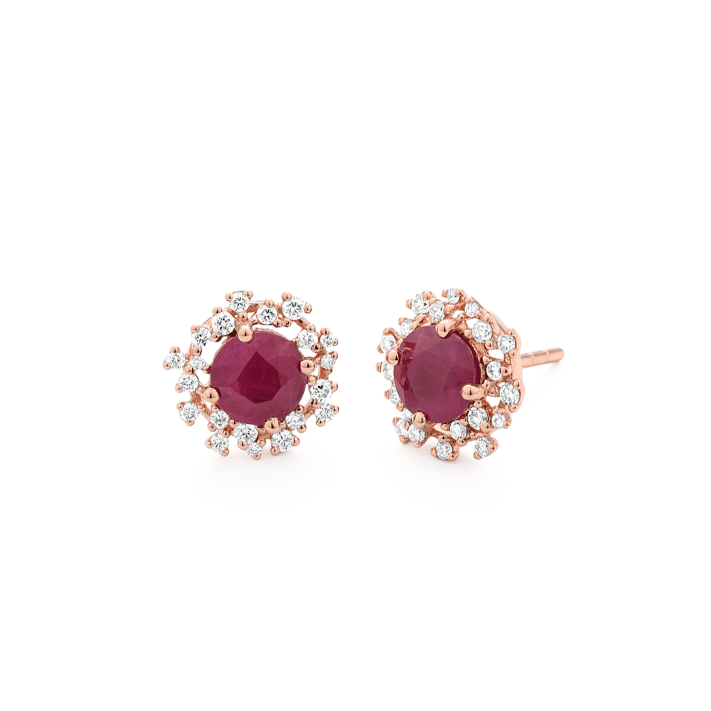 Collection Princess Earring Gold, Diamond 0.32 ct, ruby, halo