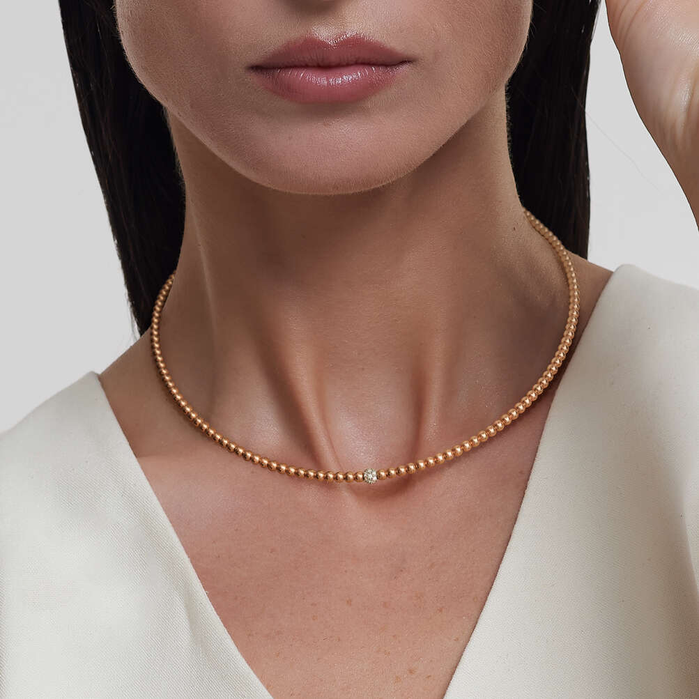 18K rose gold pendant, diamond color GH, clarity SI 0.13 ct, 21 stones, 4mm bead 3mm bead