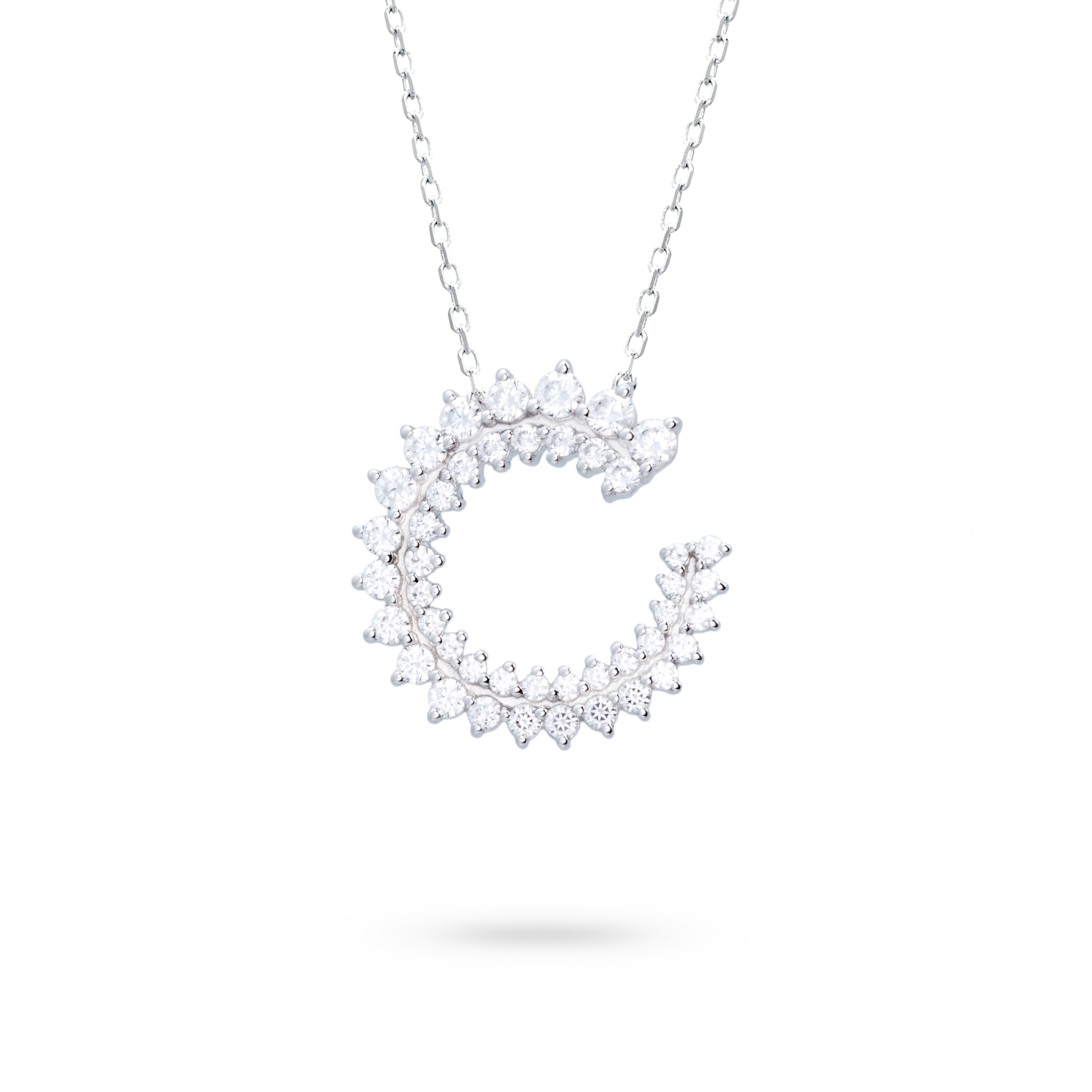 18K white gold pendant, diamond color GH, clarity SI 0.56 ct, 44 stones, 42cm chain lobster clasp