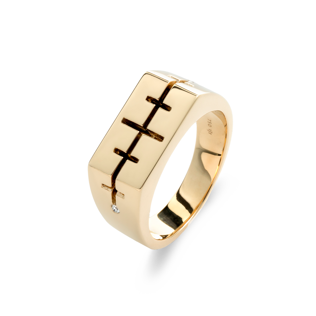 Collection Wolf Men rings & surf Ring Gold, Diamond 0.03 ct, signet