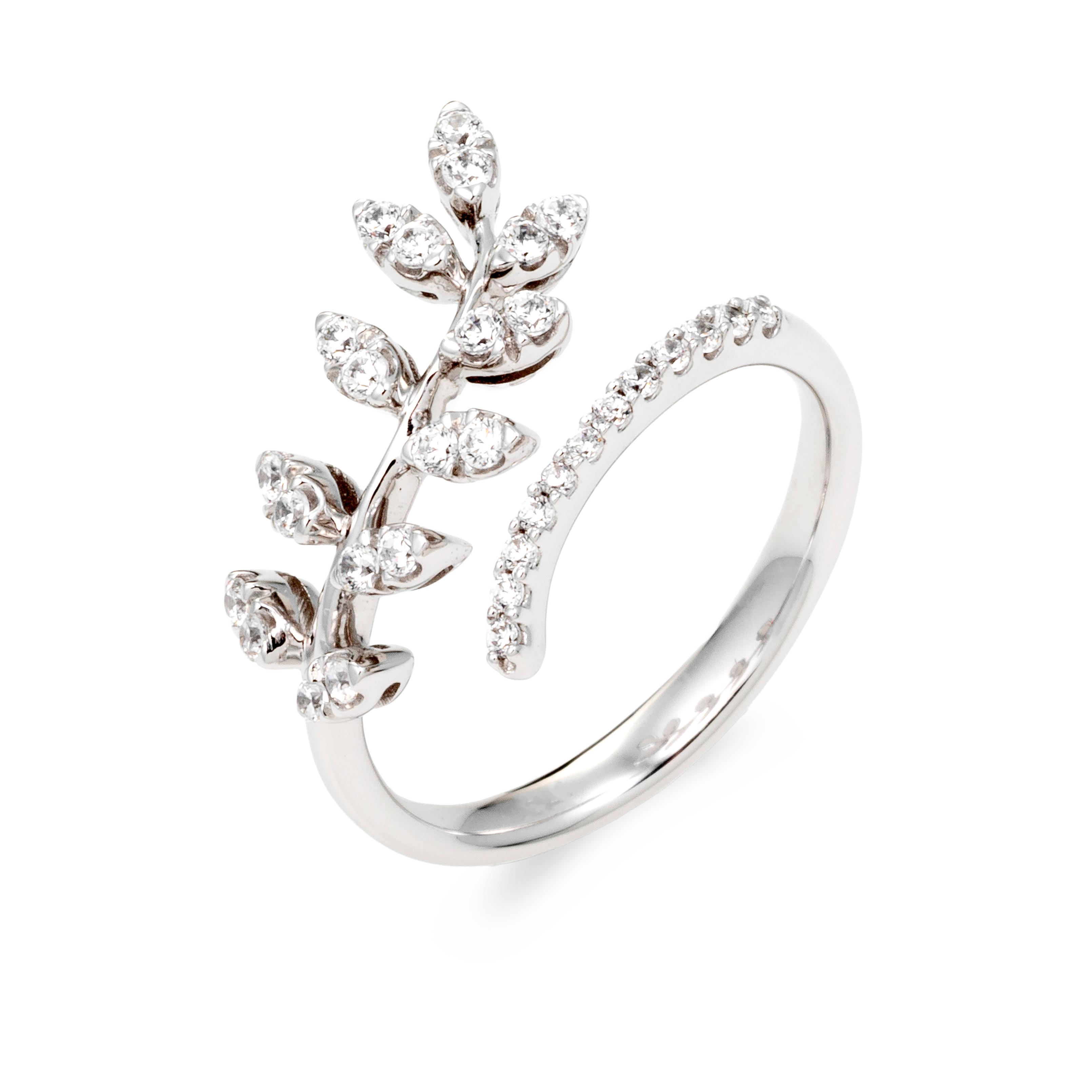 Collection Leaves and crossed Ring Gold, Diamond 0.39 ct, designer