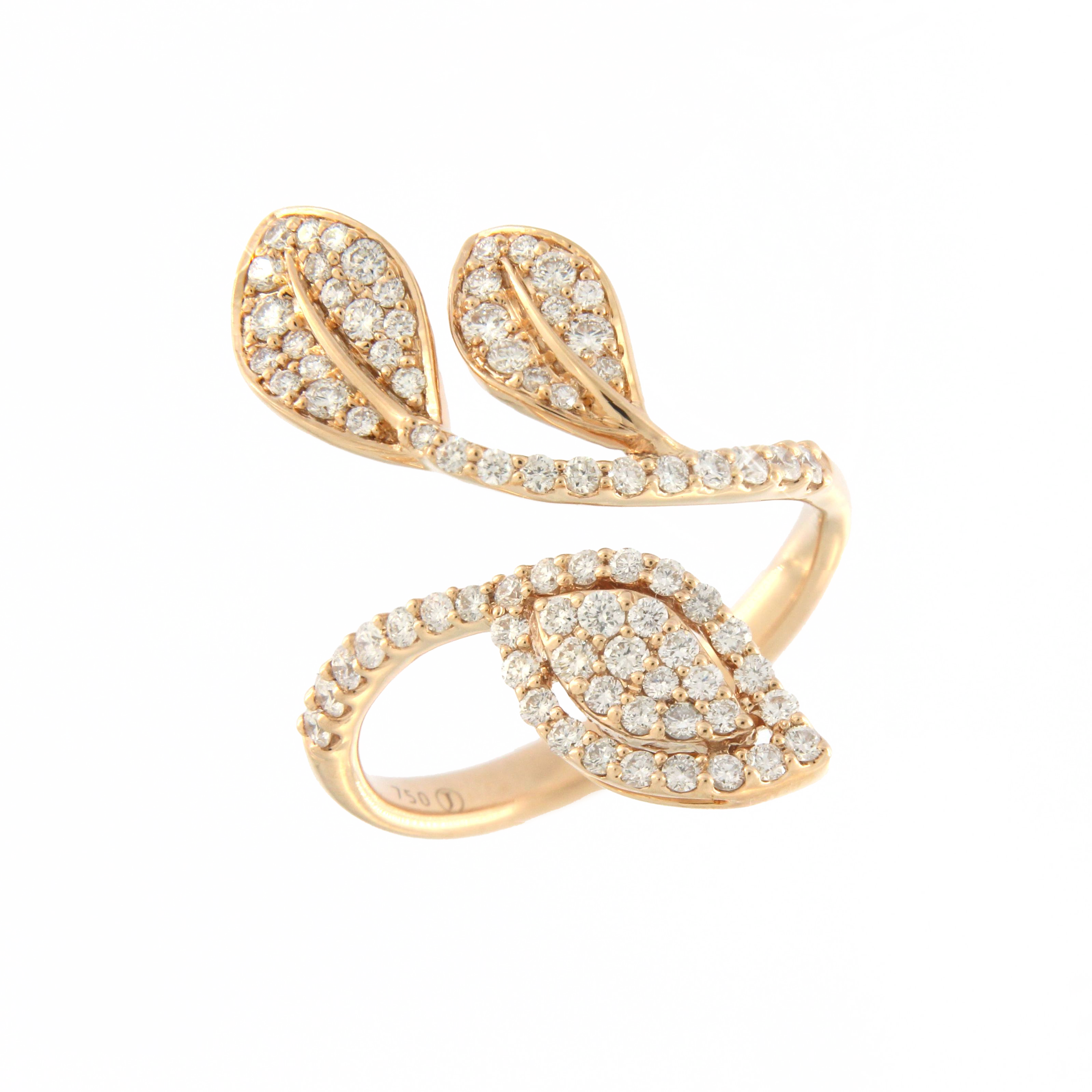 18K rose gold ring, diamond color GH, clarity SI 0.77 ct, 80 stones