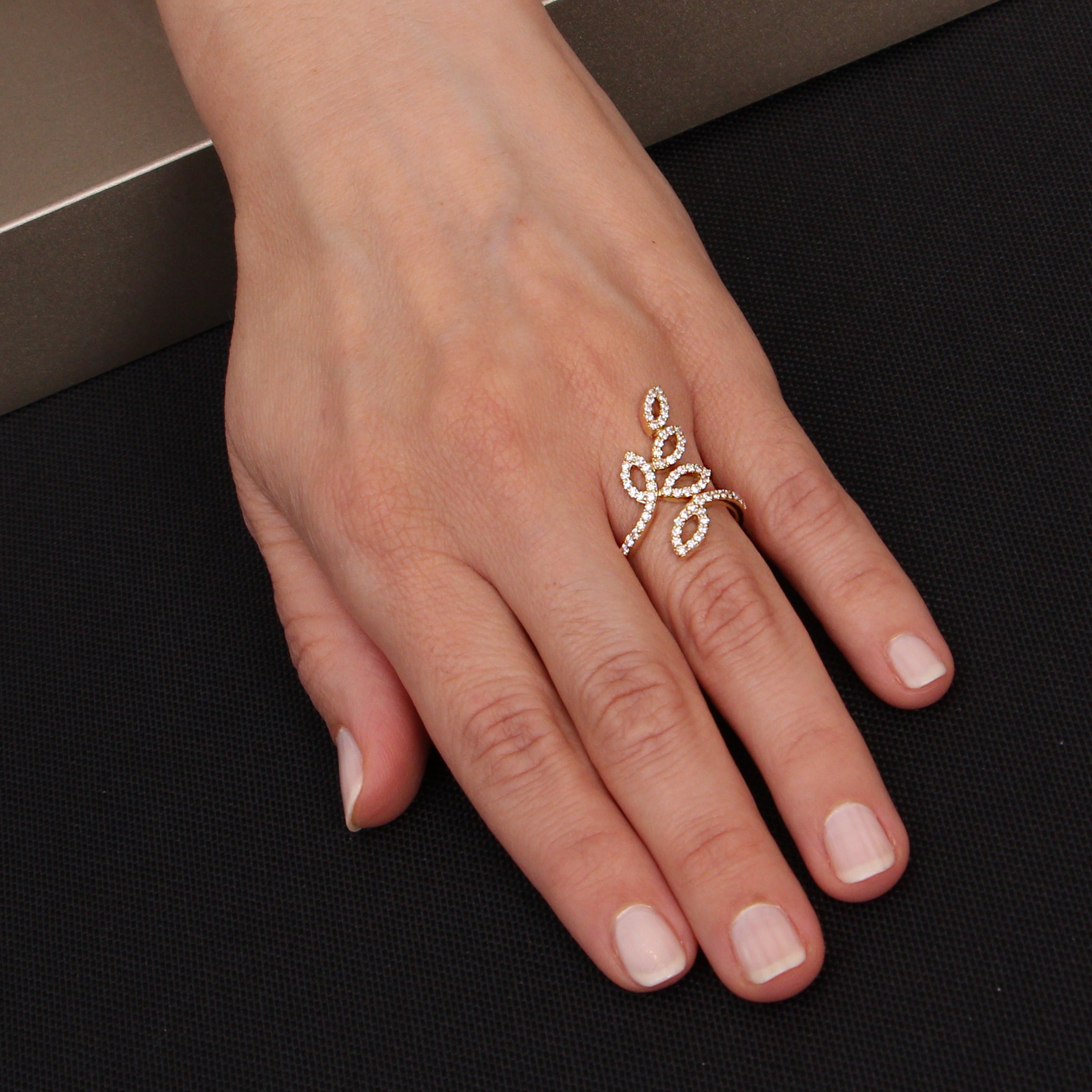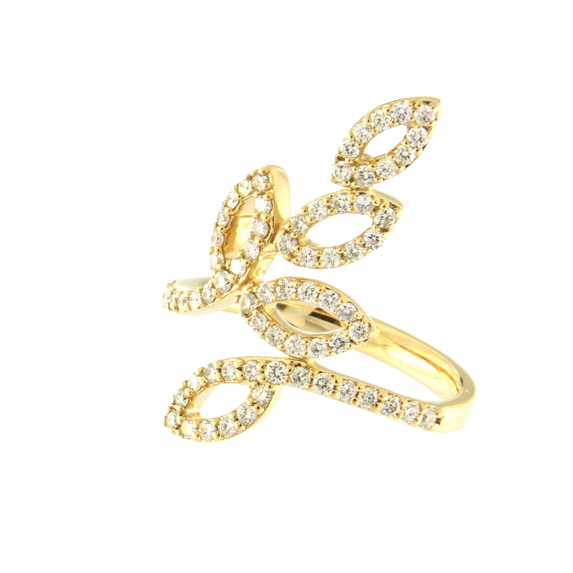 Collection Leaves and crossed Ring Gold, Diamond 0.64 ct, designer