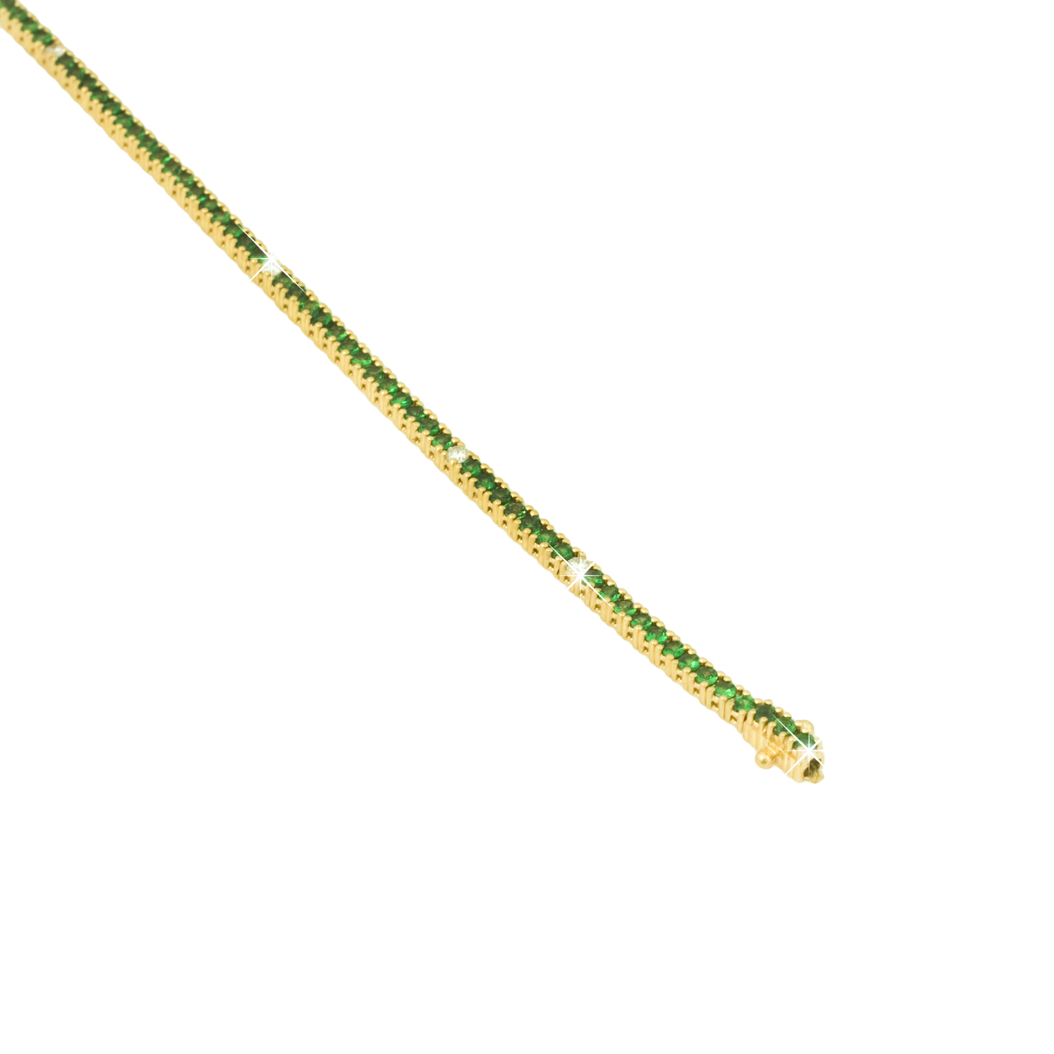 18K yellow gold bracelet, diamond color GH, clarity SI 0.15 ct, tsavorite, 7 stones, 17.5cm, custrom sizes on request