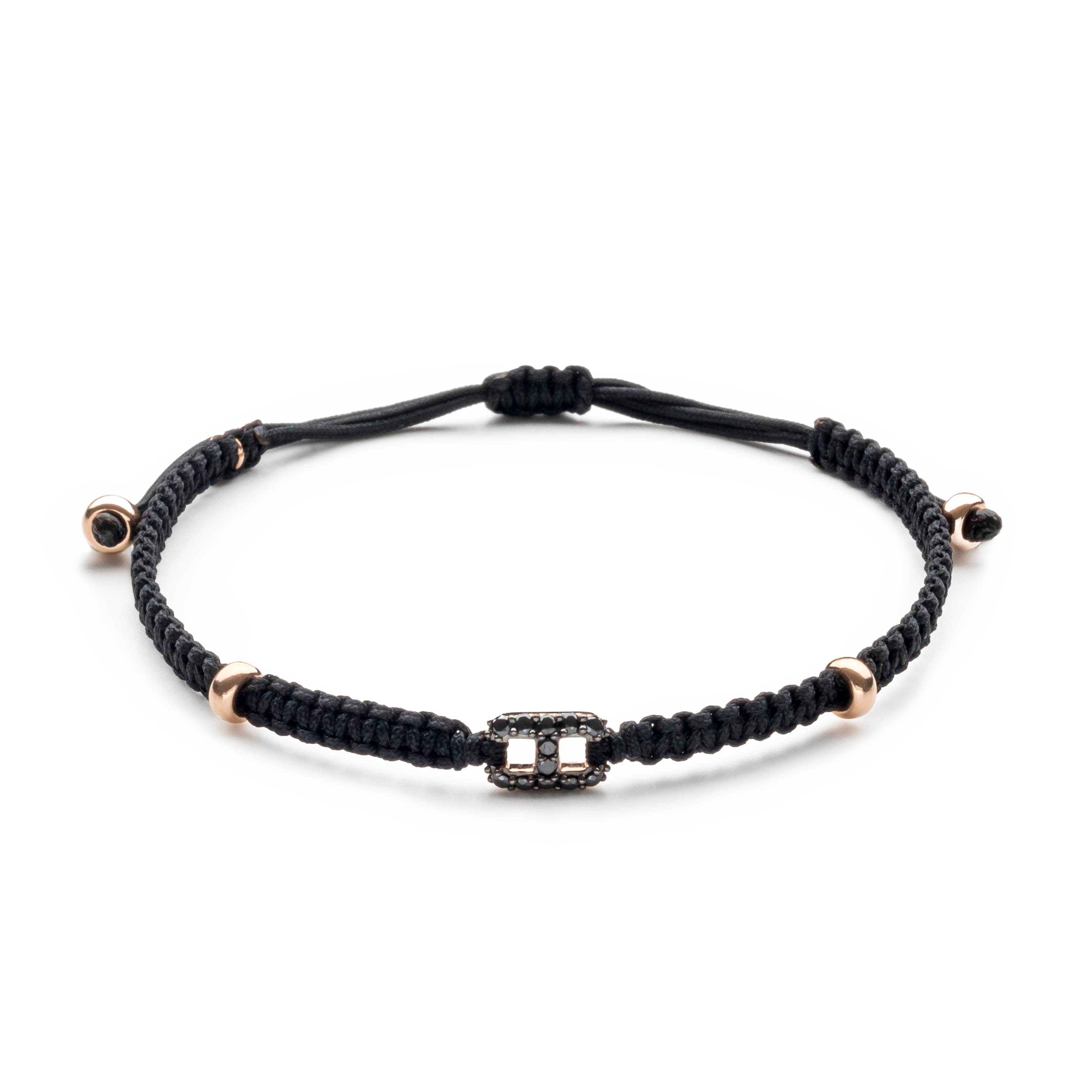 18K rose gold bracelet, 12 stones, black diamond link, Adjustable nylon cord from 15cm to 25cm