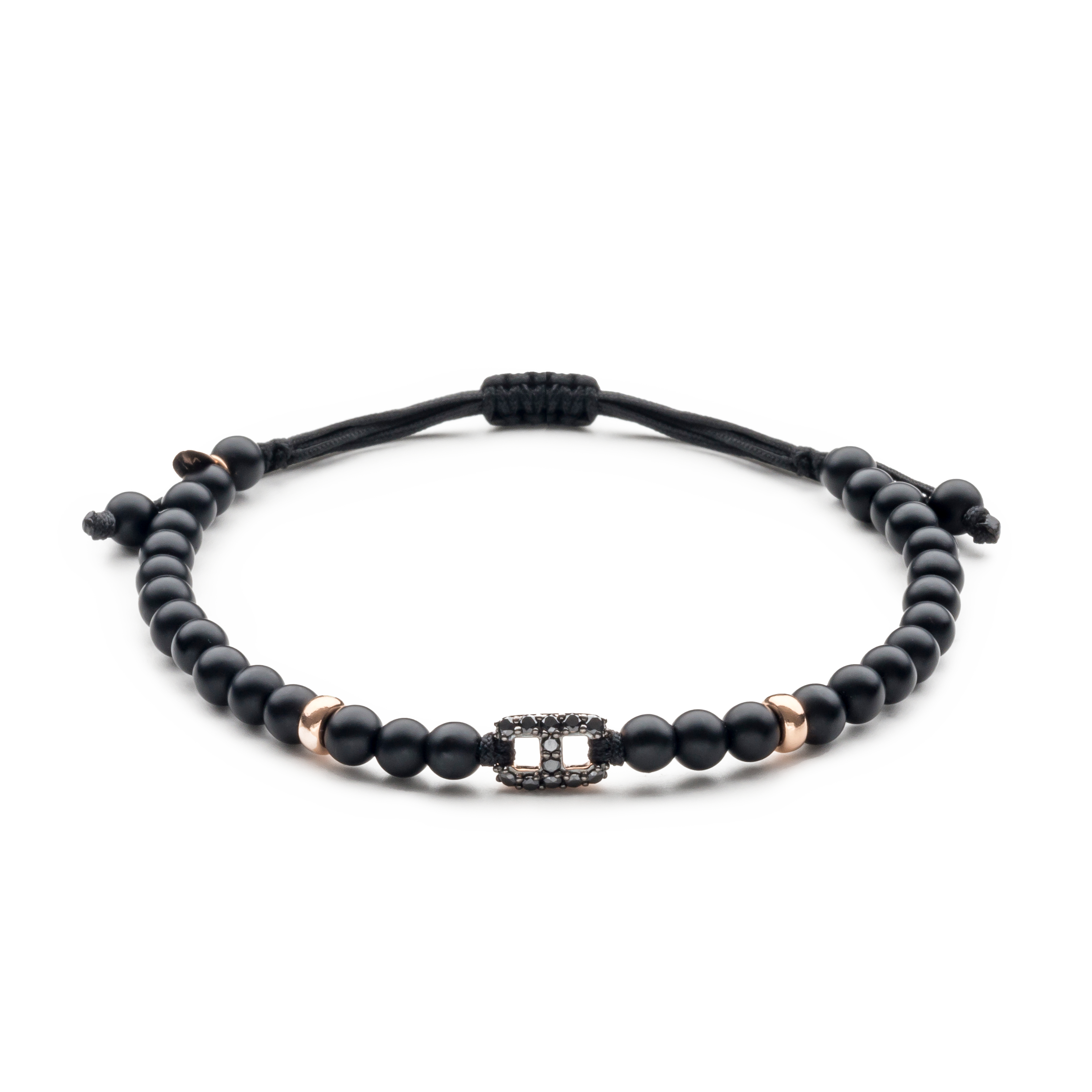 18K rose gold bracelet, onyx, 12 stones, black diamond link, Adjustable nylon cord from 15cm to 25cm