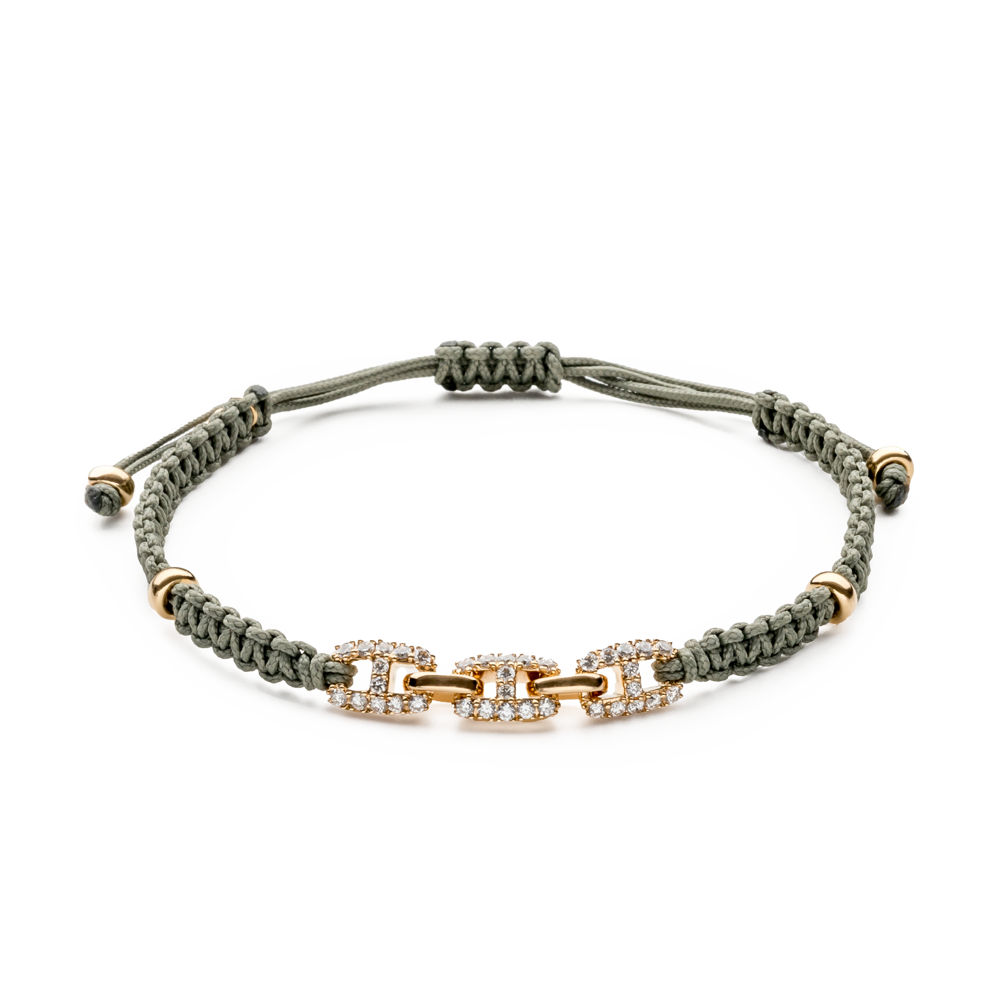 18K rose gold bracelet, 36 stones, triple diamond link, Adjustable nylon cord from 15cm to 25cm