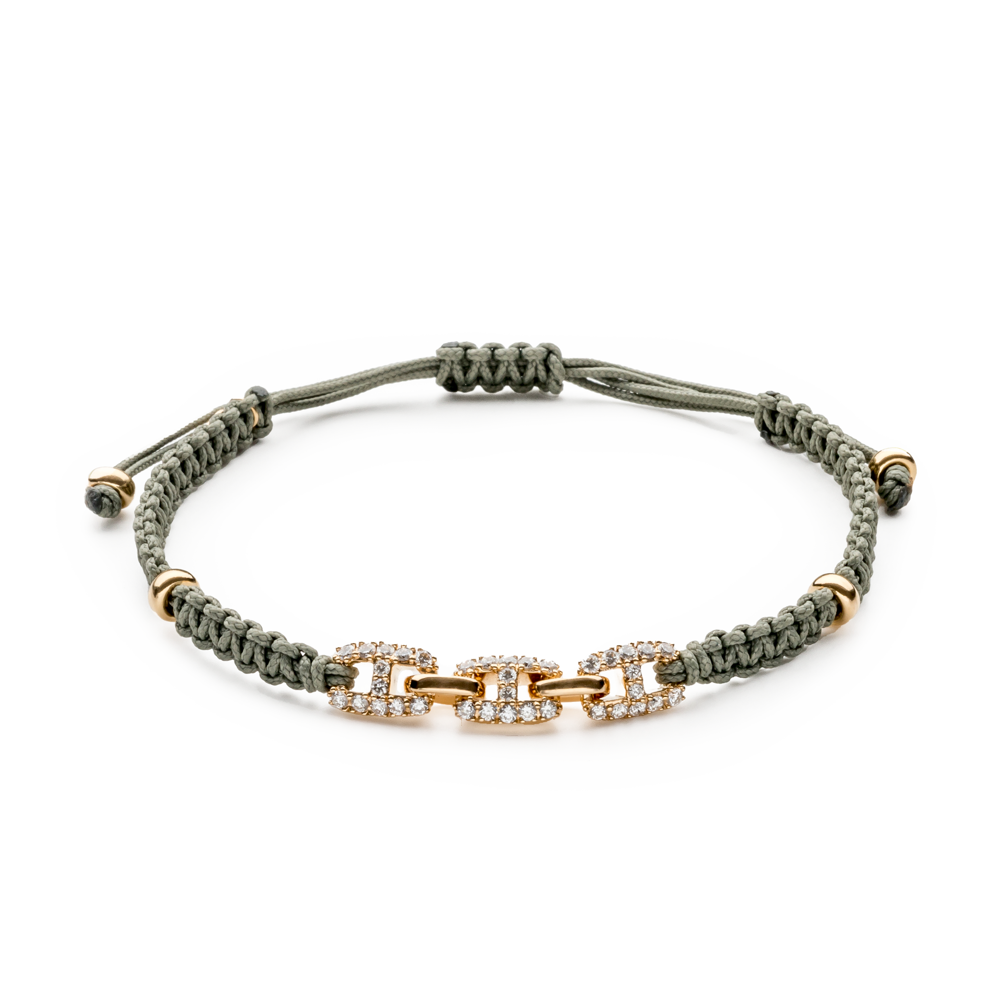 18K yellow gold bracelet, 36 stones, triple diamond link, Adjustable nylon cord from 15cm to 25cm