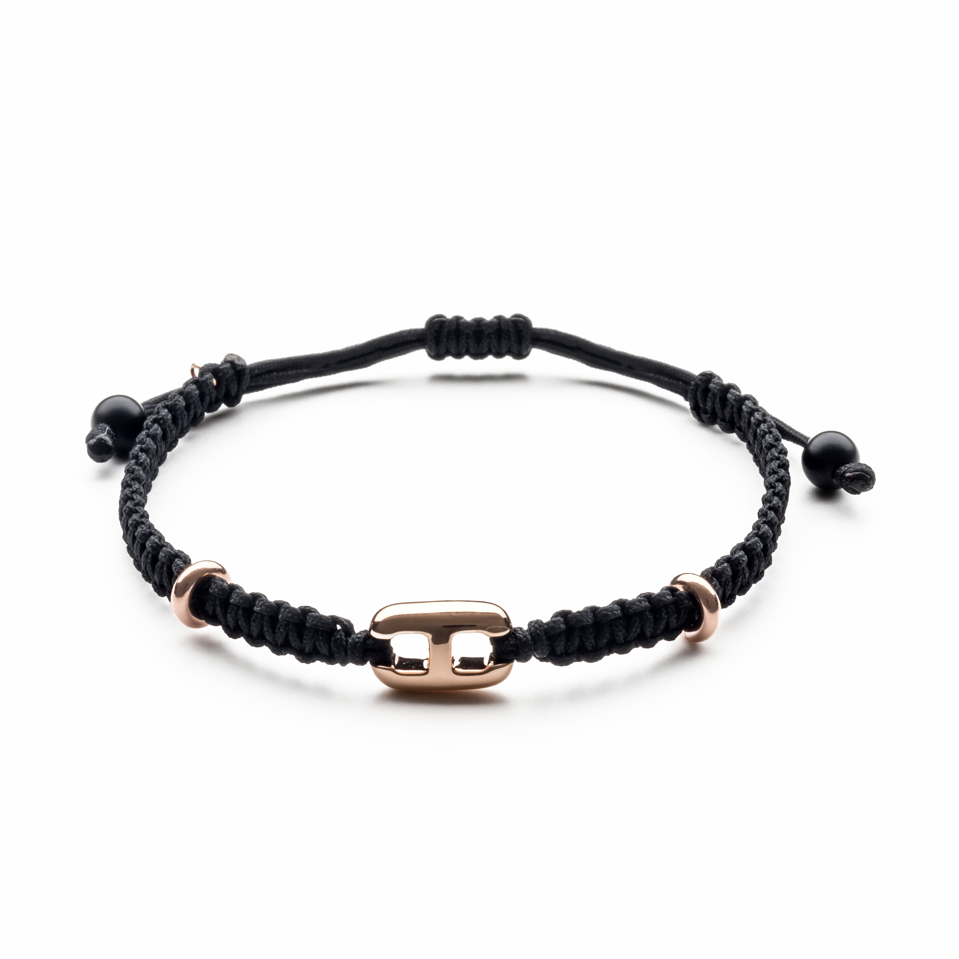 18K rose gold bracelet, onyx, link, Adjustable nylon cord from 15cm to 25cm
