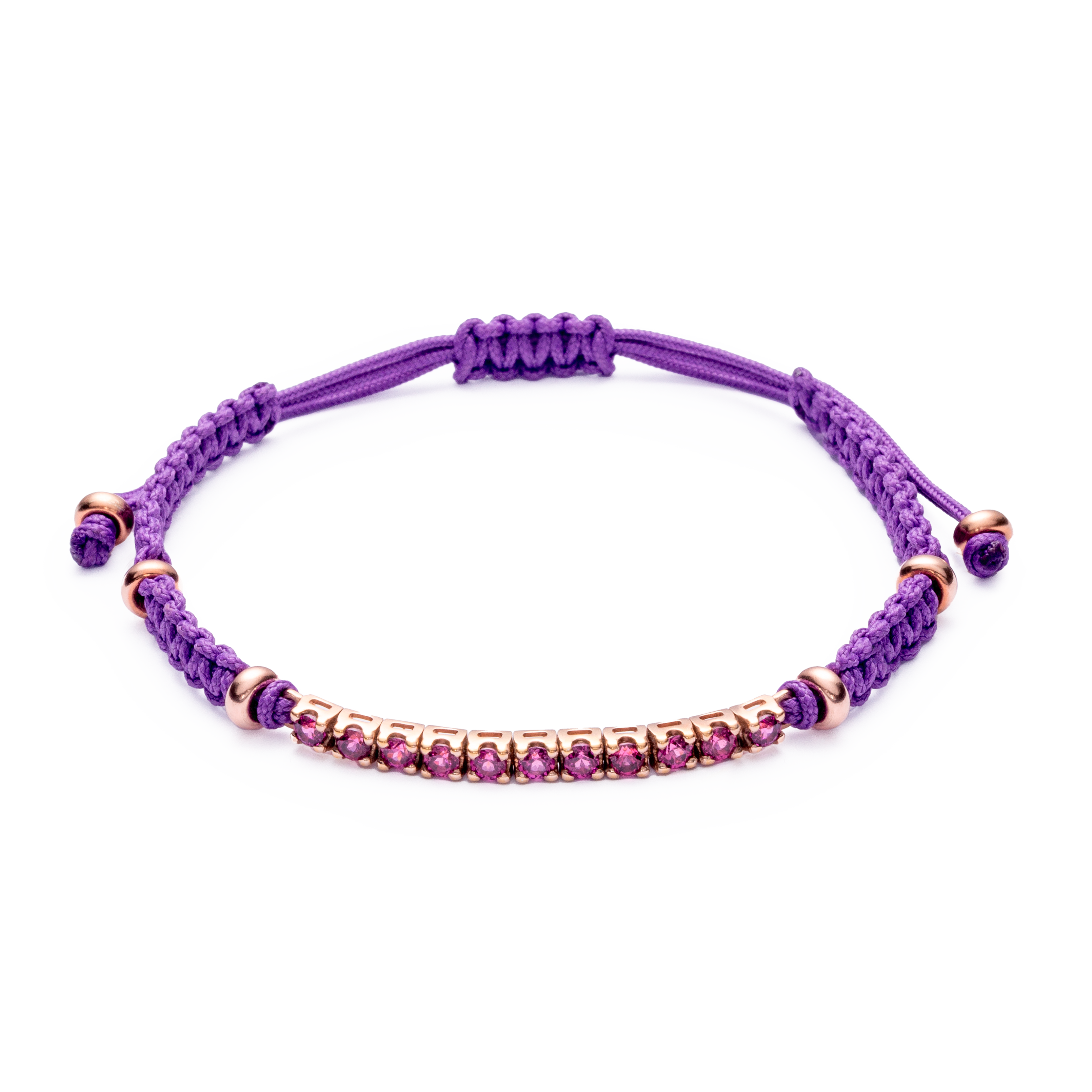 18K rose gold bracelet, rhodolite, riviere, Adjustable nylon cord from 15cm to 25cm