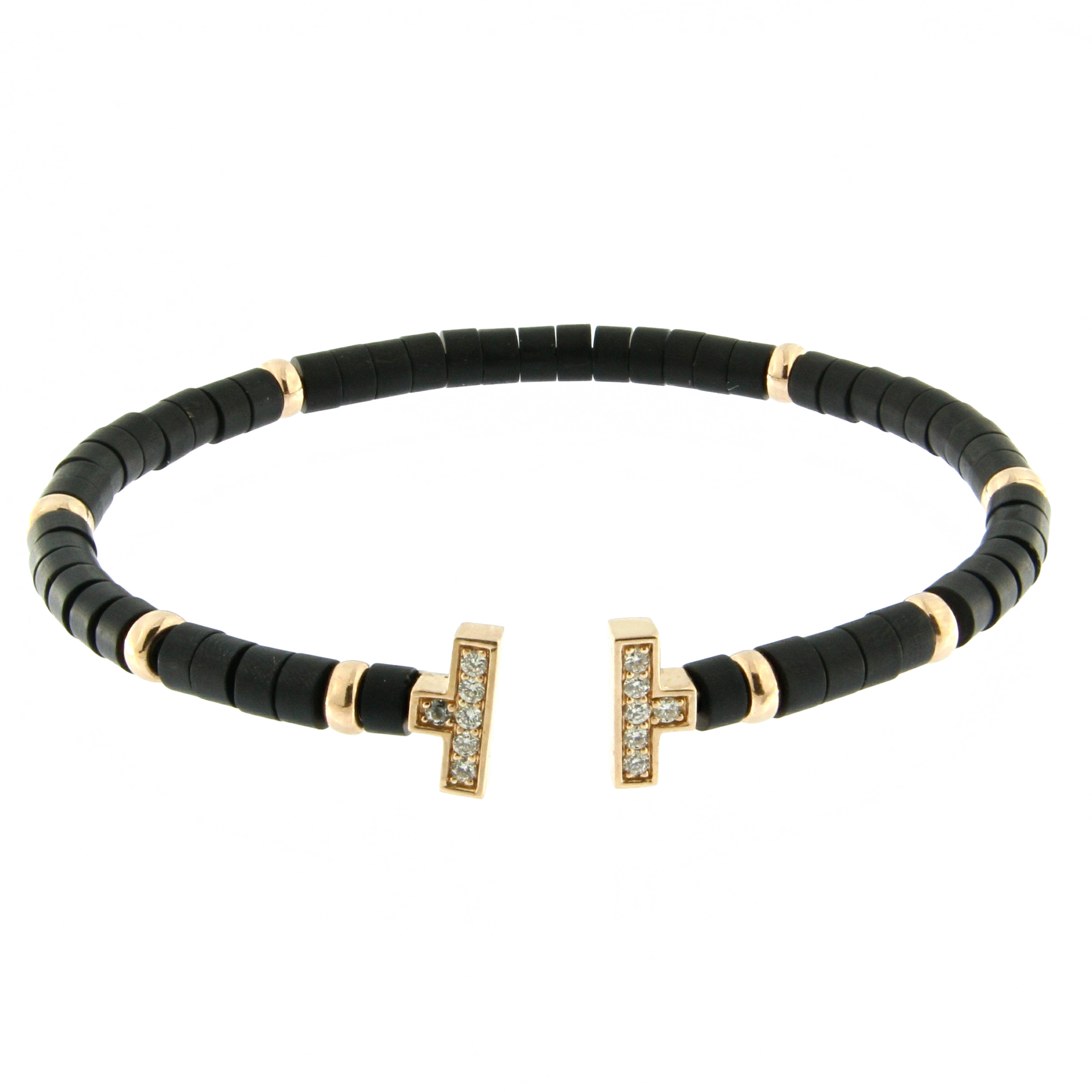 18K rose gold bracelet, onyx, titanium size S (14.7cm)