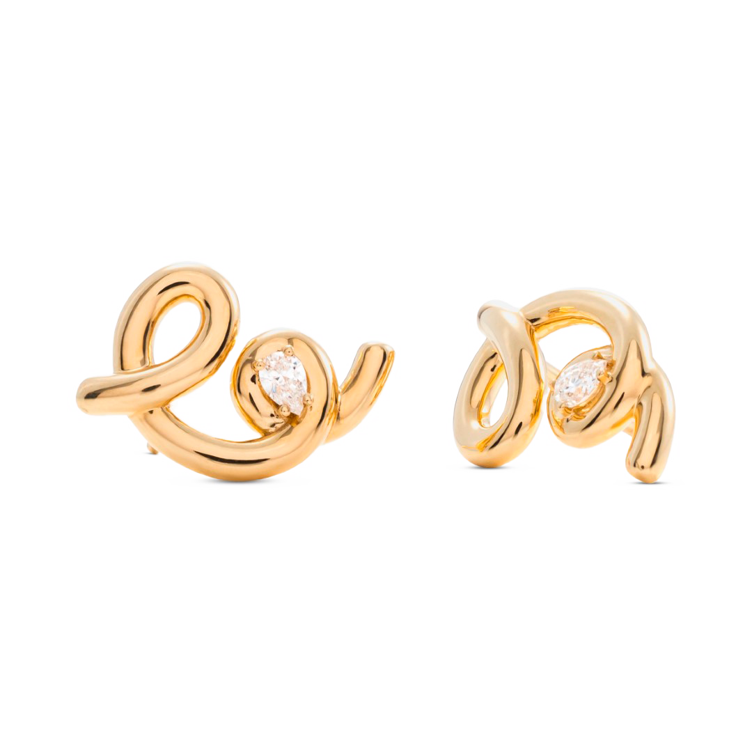 Collection Waves Earring Gold, Diamond 0.11 ct, designer