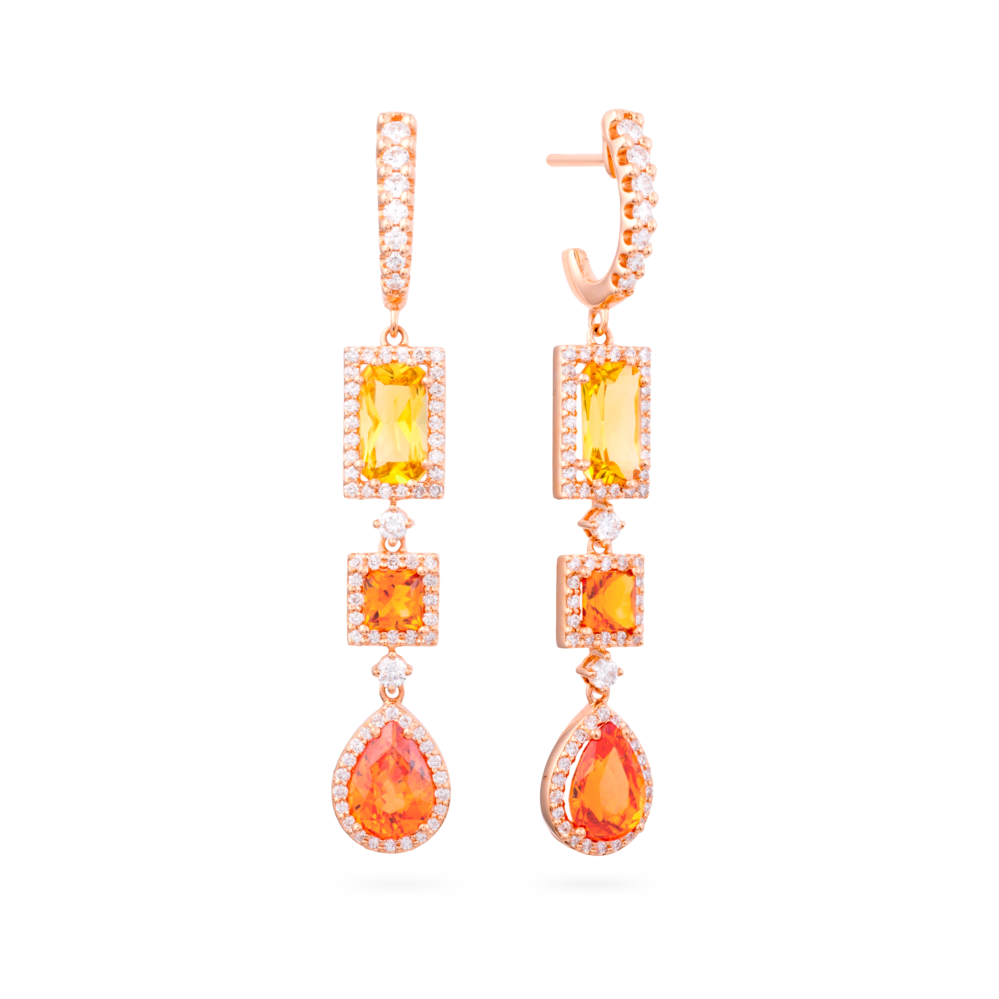 18K rose gold earring, diamond color GH, clarity SI 1.04 ct, citrine, 146 stones, pressure clasp