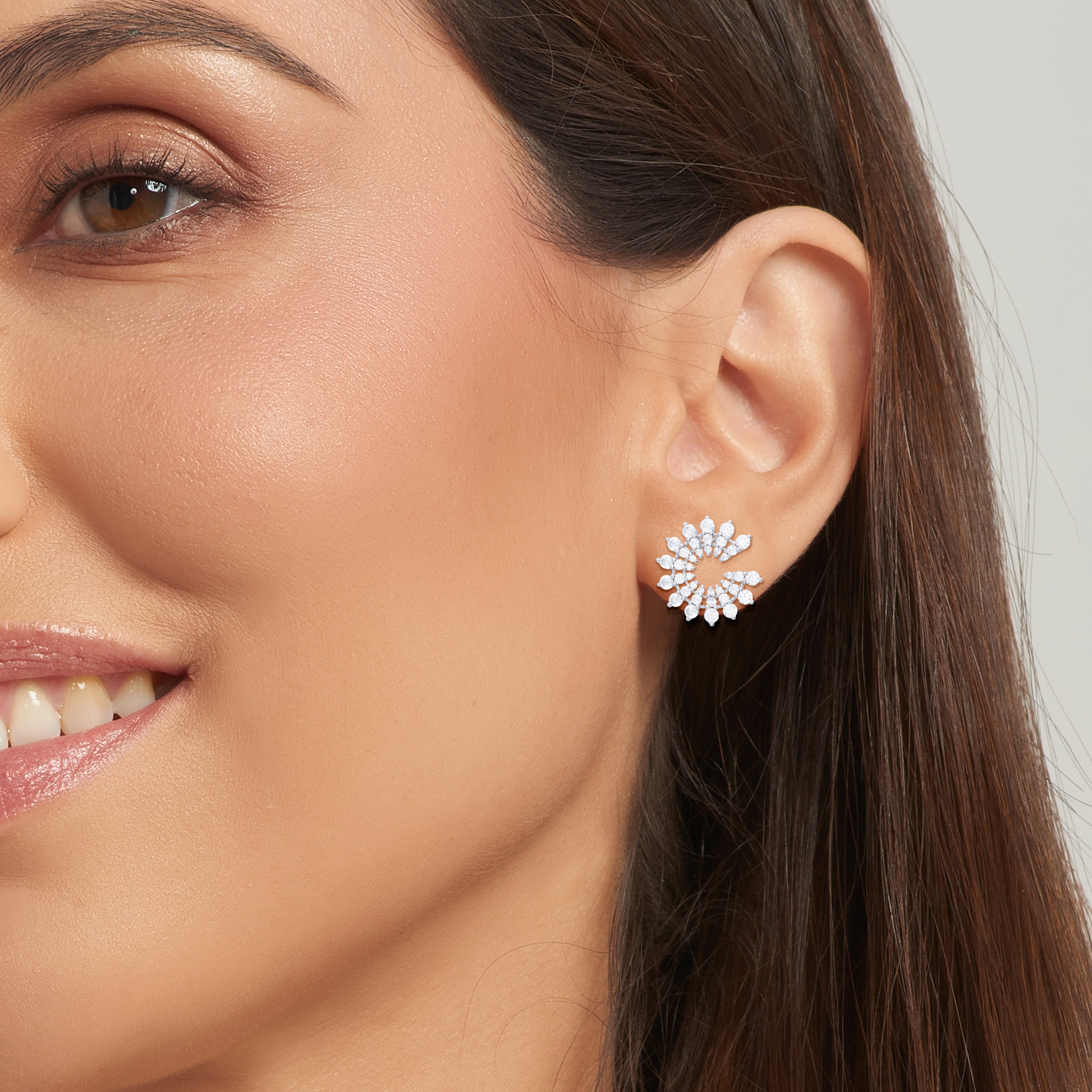 18K white gold earring, diamond color GH, clarity SI 1.76 ct, 78 stones, pressure clasp