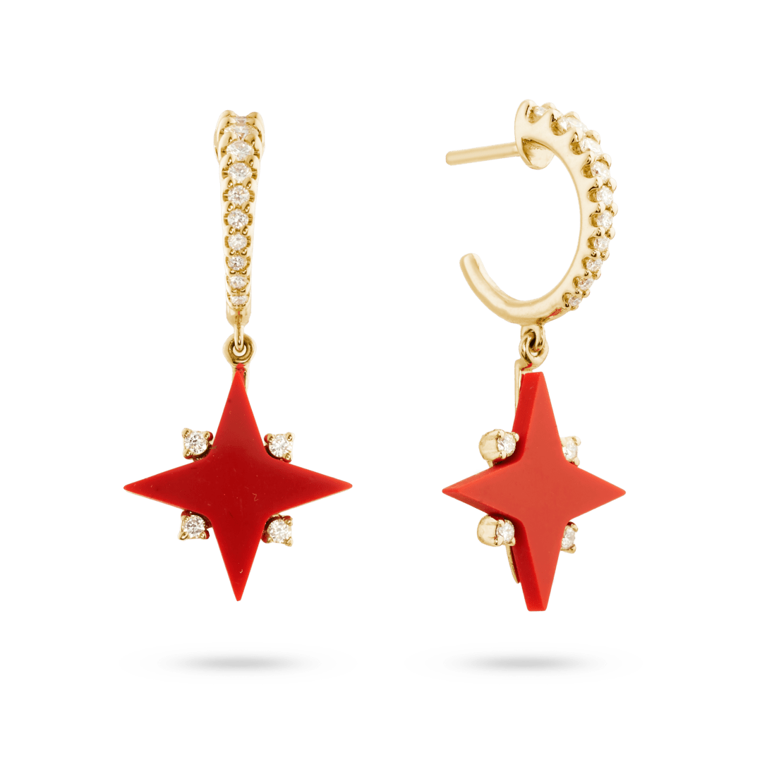 Collection Timeless Earring Gold, Diamond 0.38 ct, coral p, designer