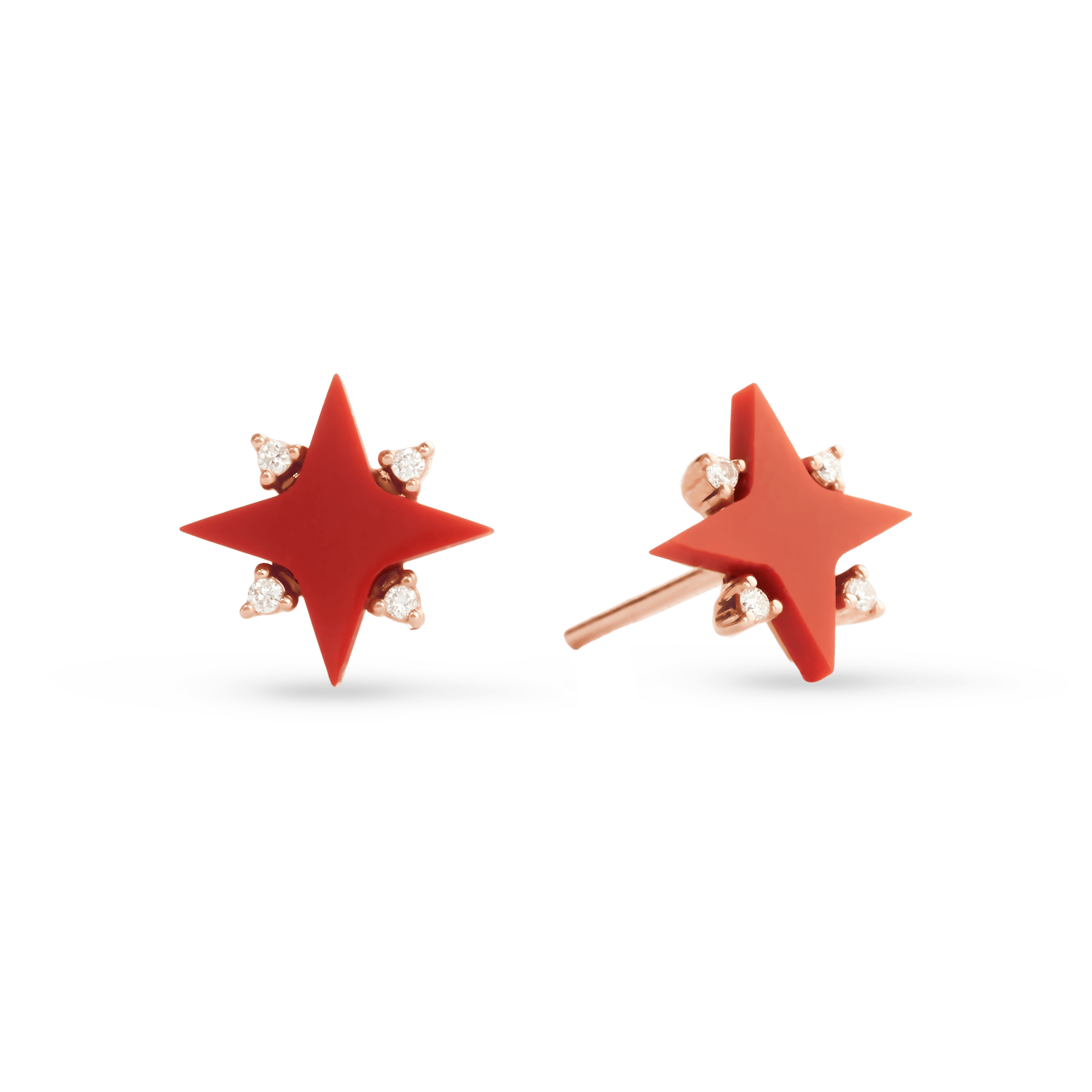 Collection Timeless Earring Gold, Diamond 0.04 ct, coral p, designer