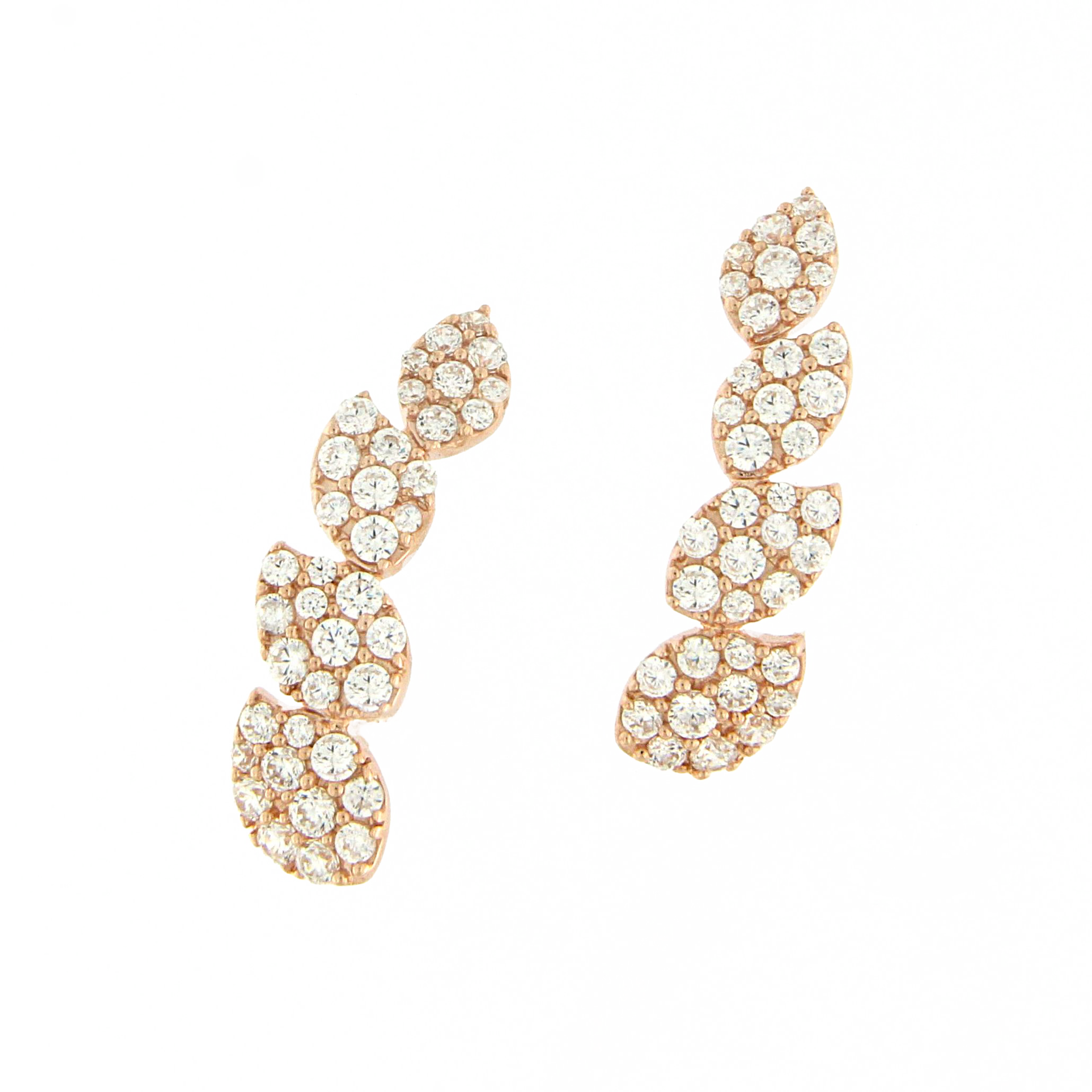 18K rose gold earring, diamond color GH, clarity SI 0.90 ct, 76 stones, pressure clasp
