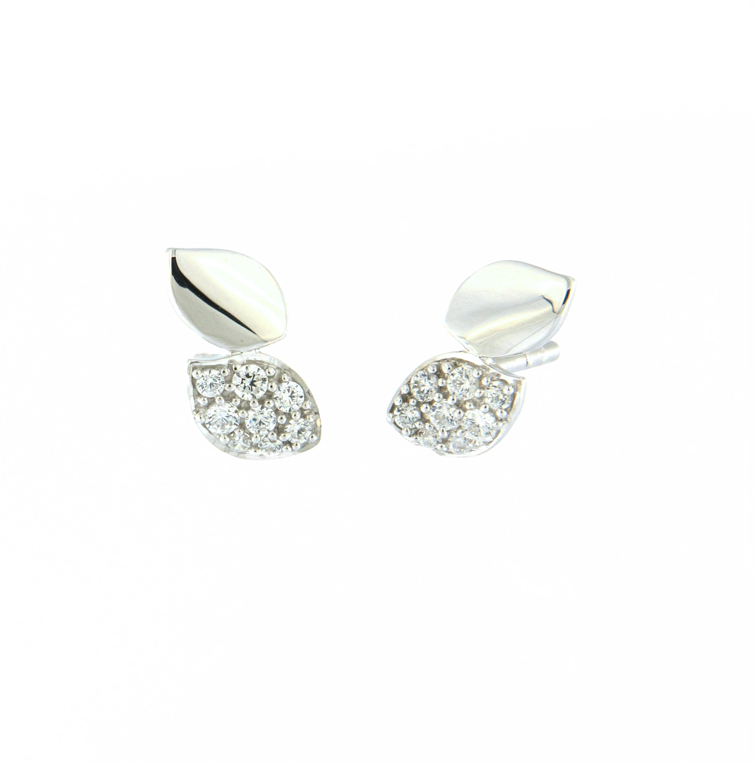 Collection Leaves and crossed Earring Gold, Diamond 0.18 ct, climbers