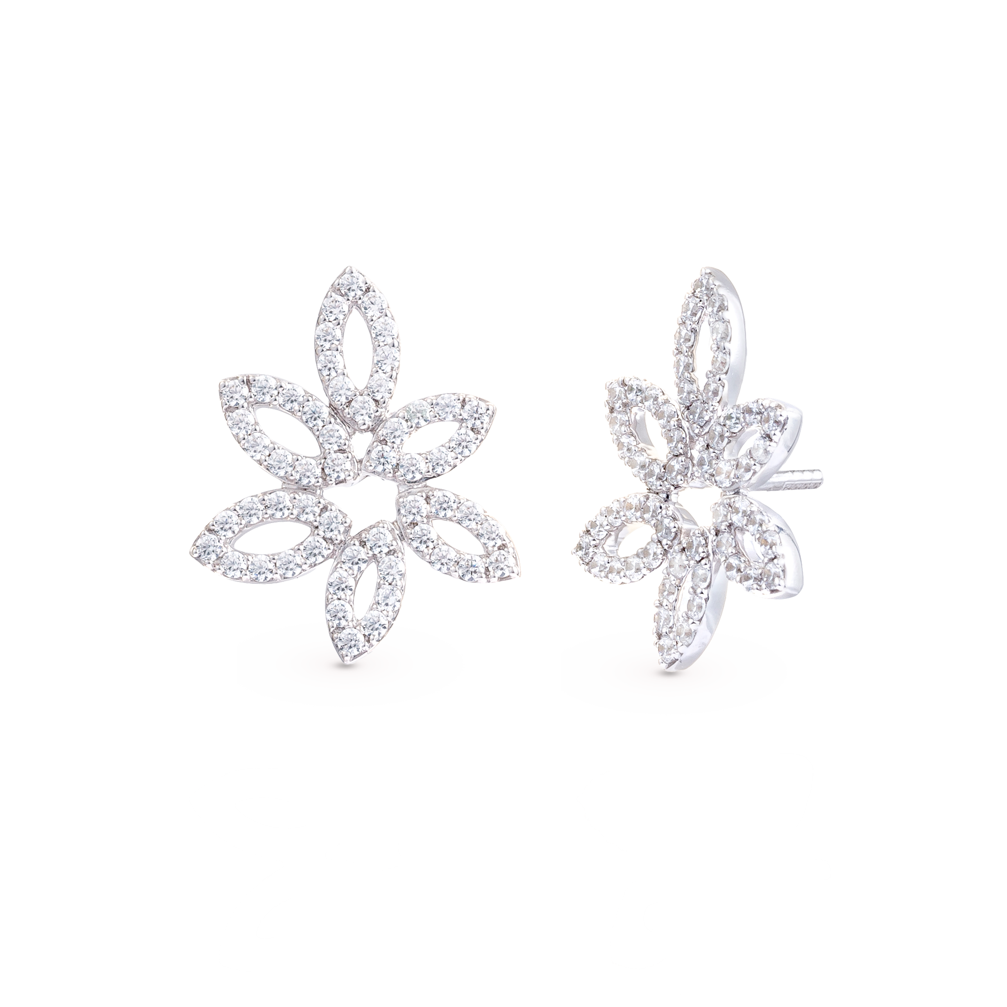 18K white gold earring, diamond color GH, clarity SI 1.06 ct, 108 stones, pressure clasp