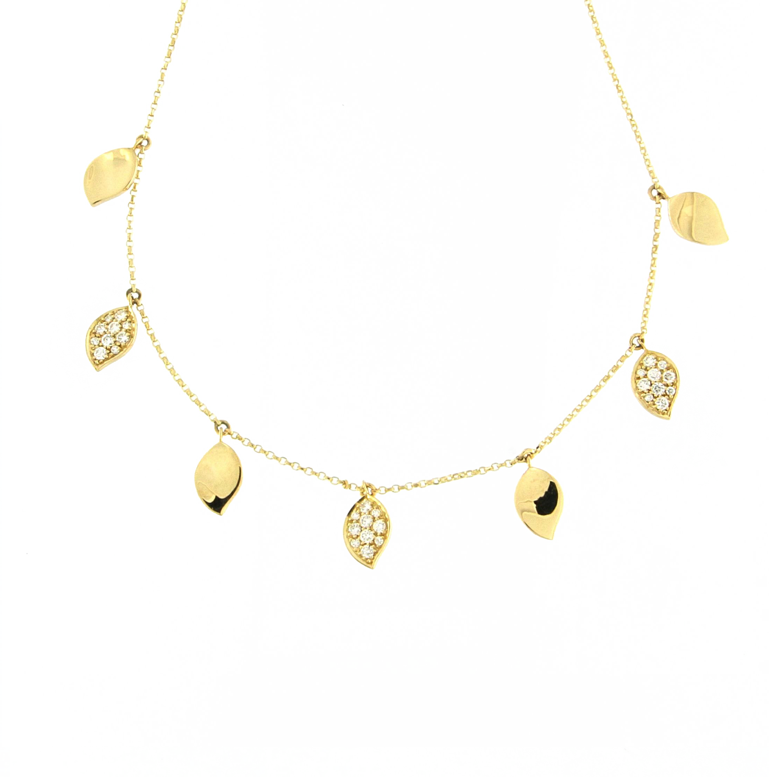 Collection Leaves and crossed Pendant Gold, Diamond 0.38 ct