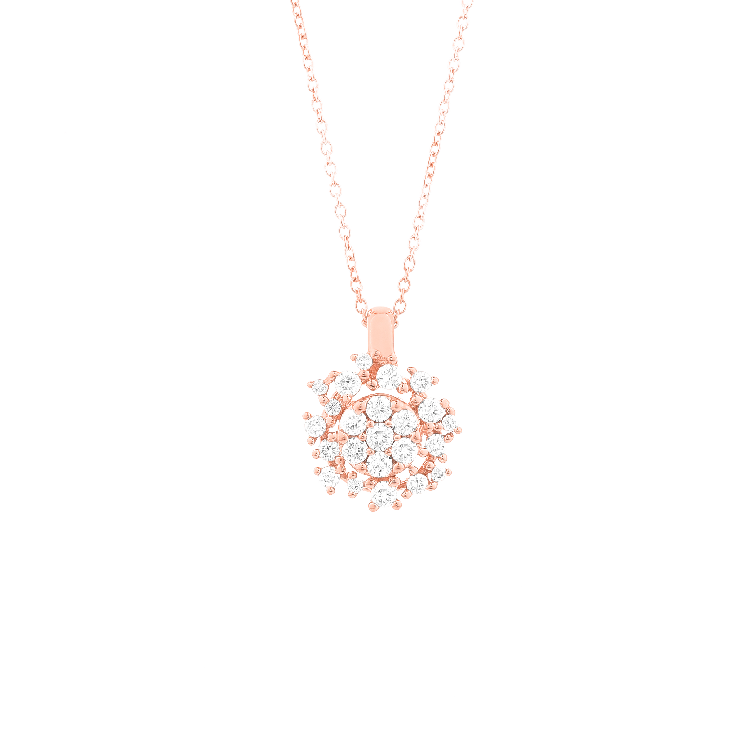 18K rose gold pendant, diamond color GH, clarity SI 0.22 ct, 23 stones, 42cm rolo chain lobster clasp