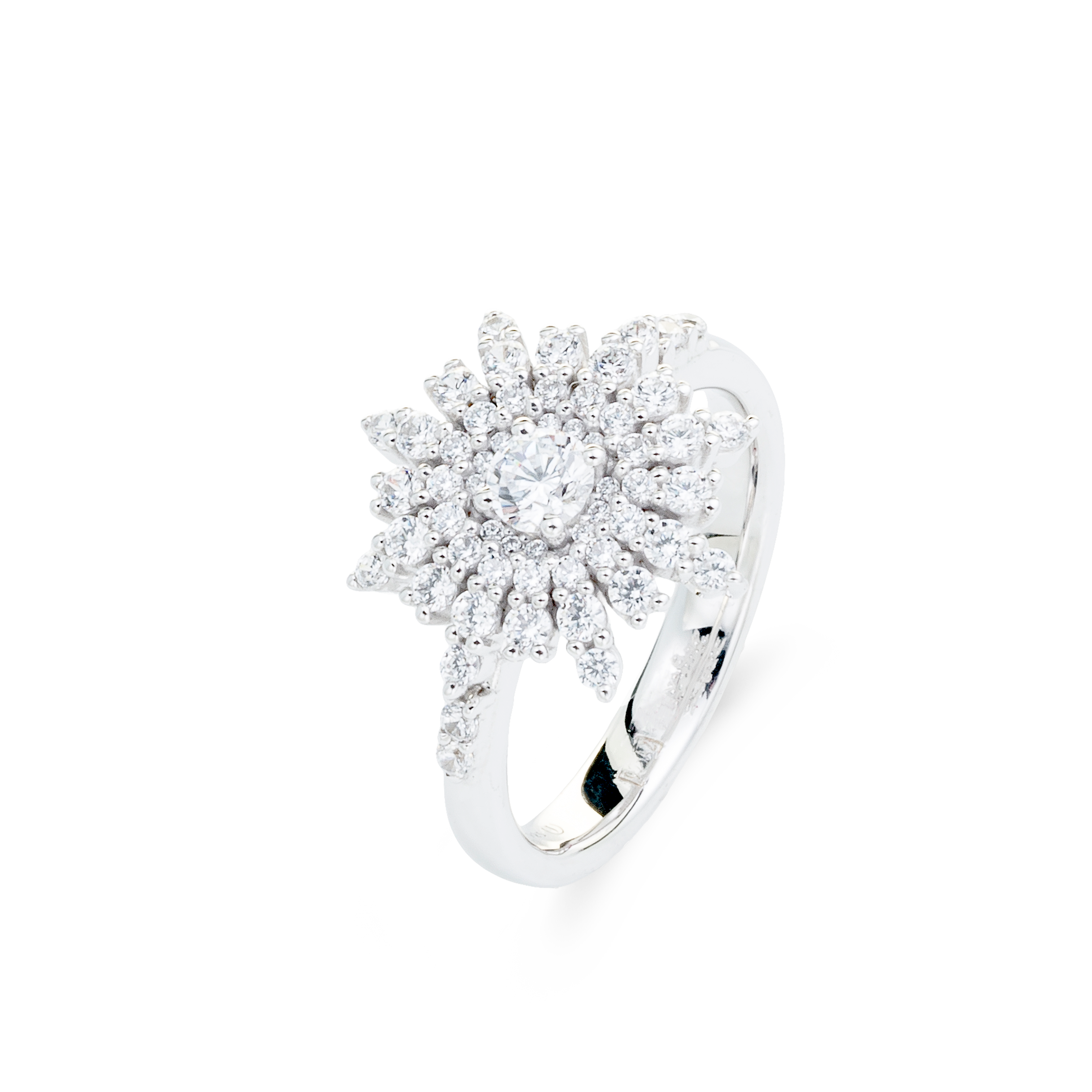 18K white gold ring, diamond color GH, clarity SI 0.78 ct, 46 stones