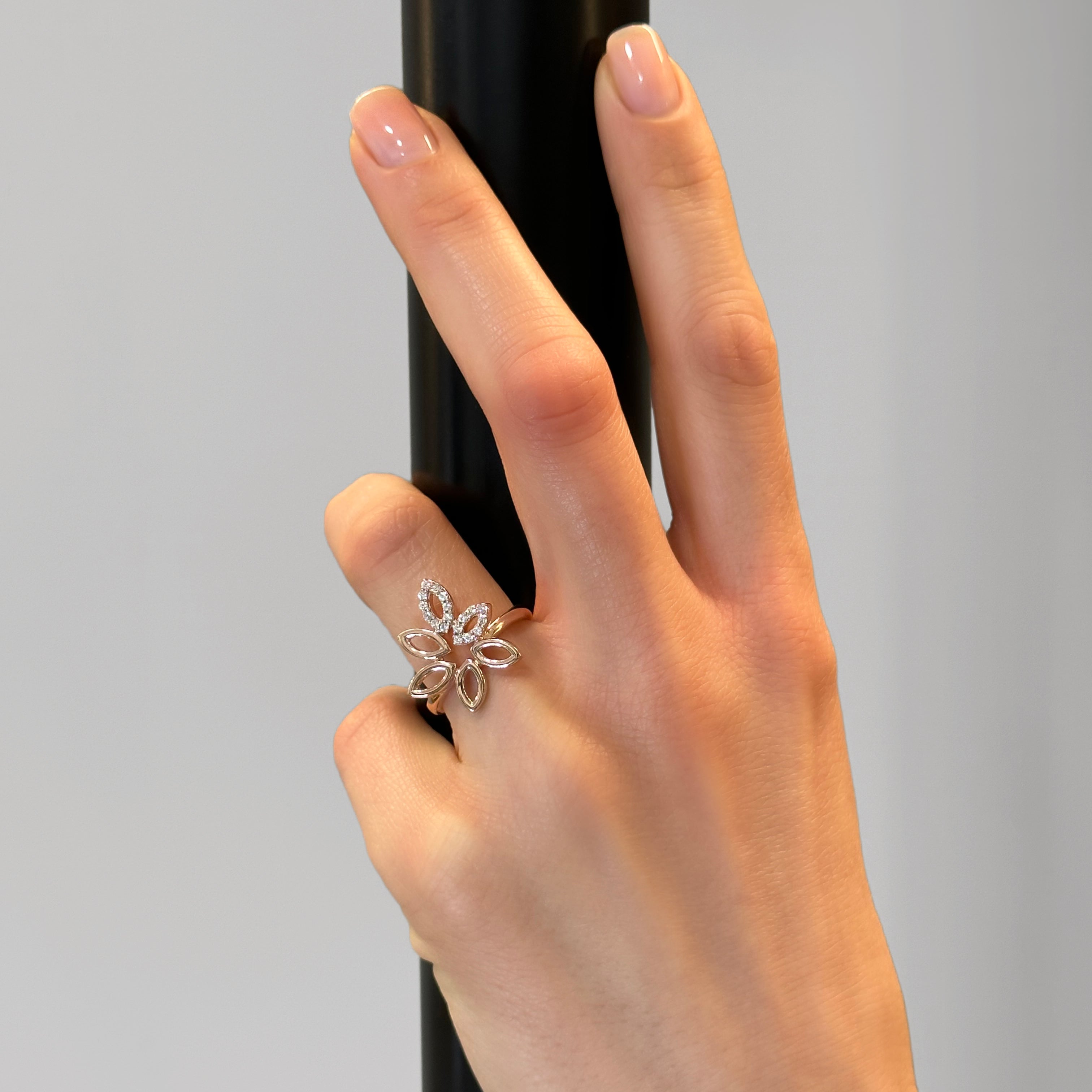 Collection Leaves and crossed Ring Gold, Diamond 0.21 ct, designer