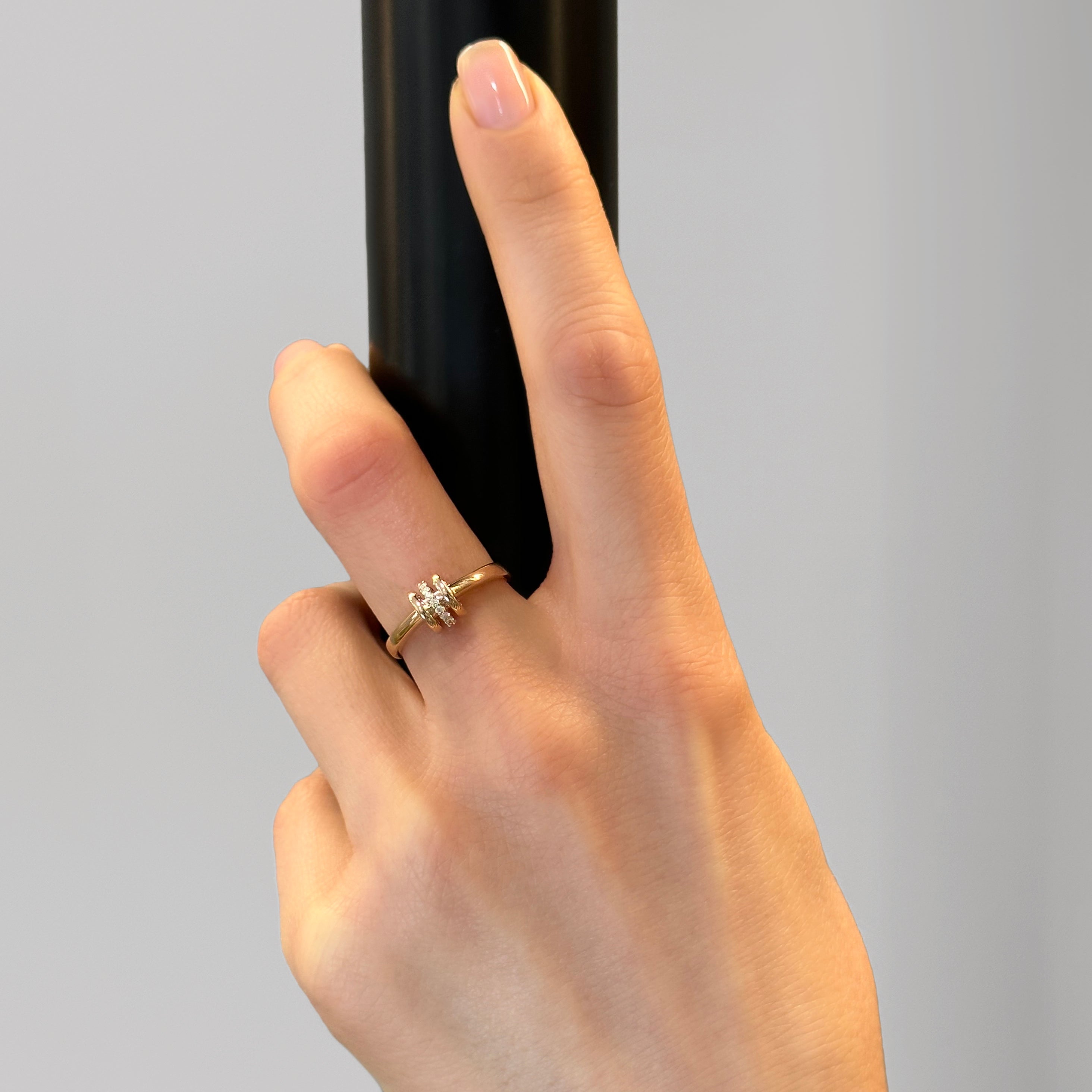 18K rose gold ring, diamond color GH, clarity SI 0.10 ct, 18 stones