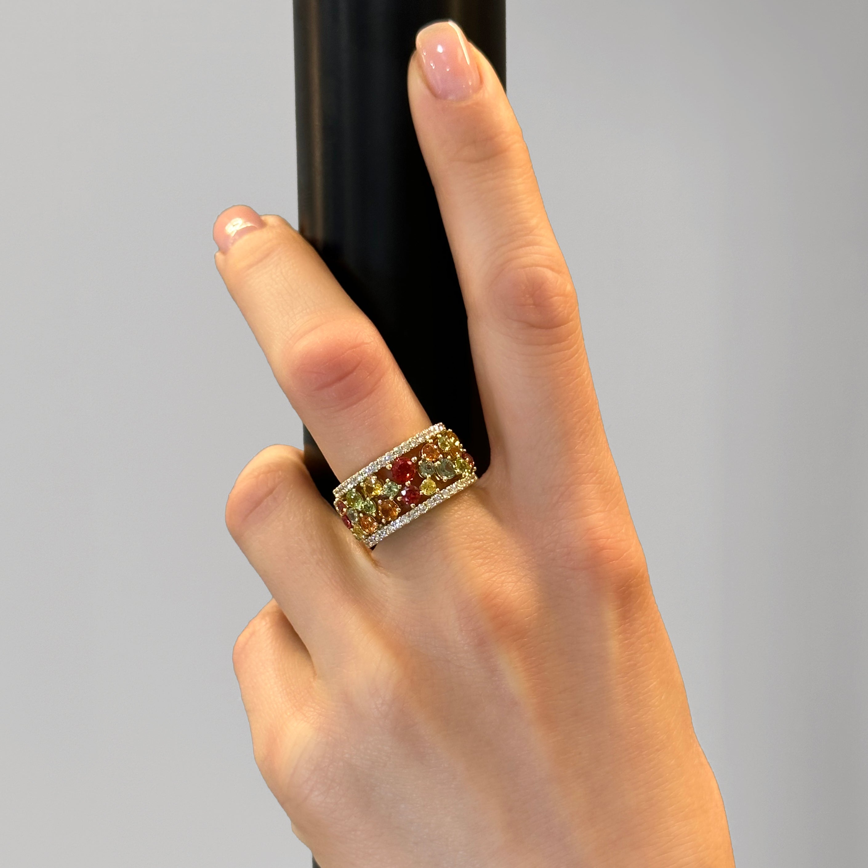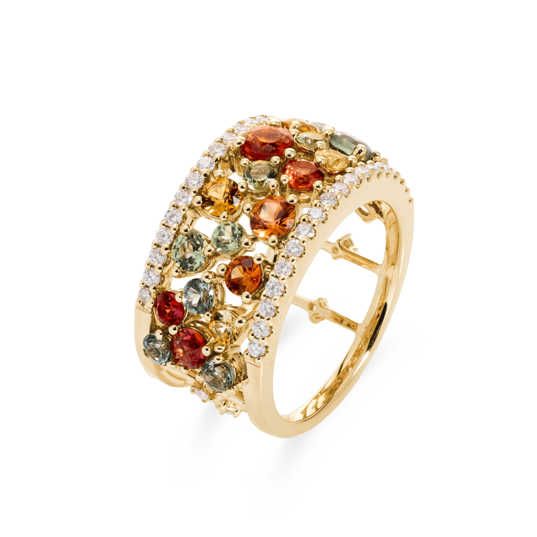 Collection Sunset Ring Gold, Diamond 0.48 ct, sapphire and peridot, designer