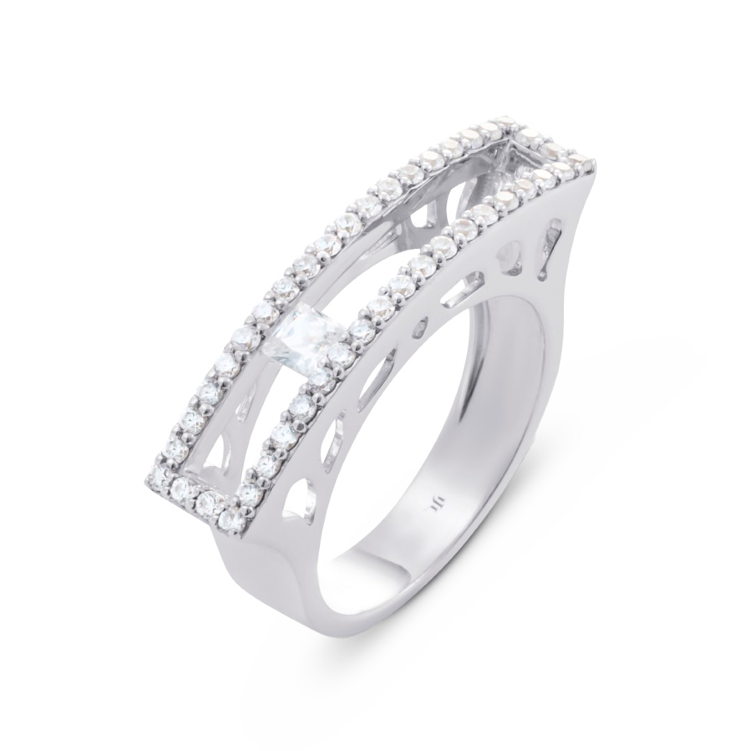 18K white gold ring, diamond color GH, clarity SI 0.40 ct and diamond color GH, clarity SI 0.15 ct, 43 stones