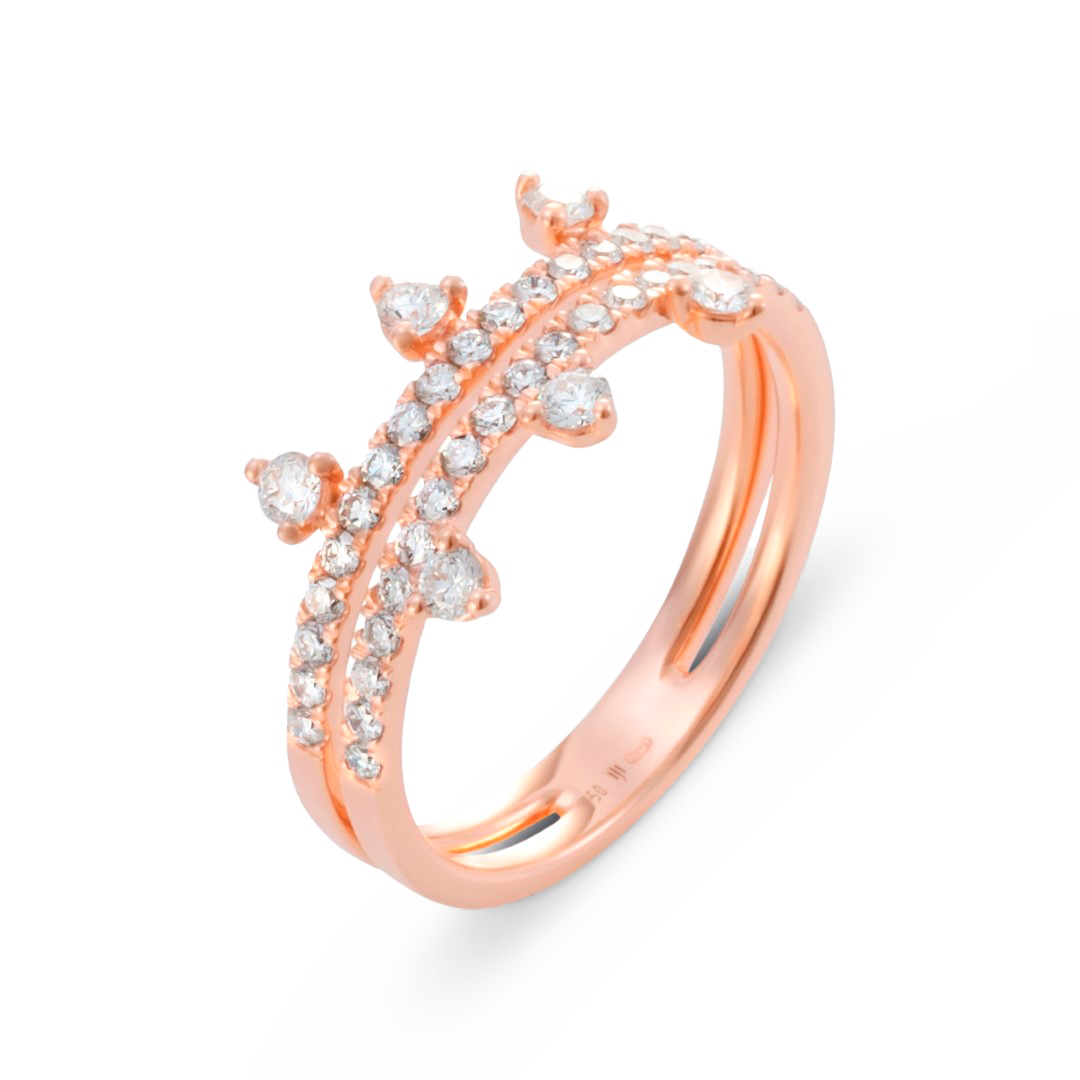 18K rose gold ring, diamond color GH, clarity SI 0.57 ct, 44 stones