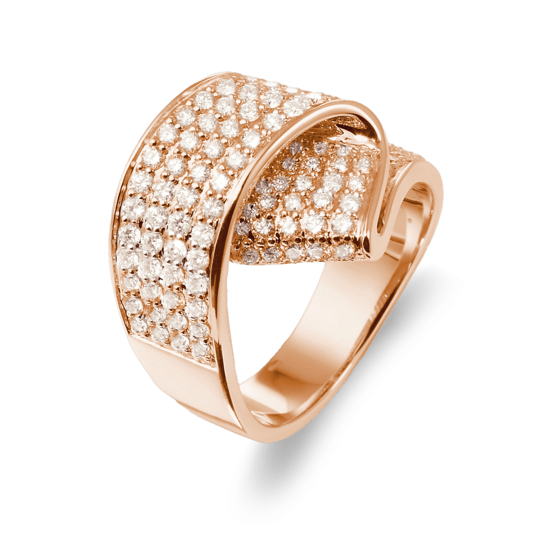 18K rose gold ring, diamond color GH, clarity SI 1.21 ct, 110 stones
