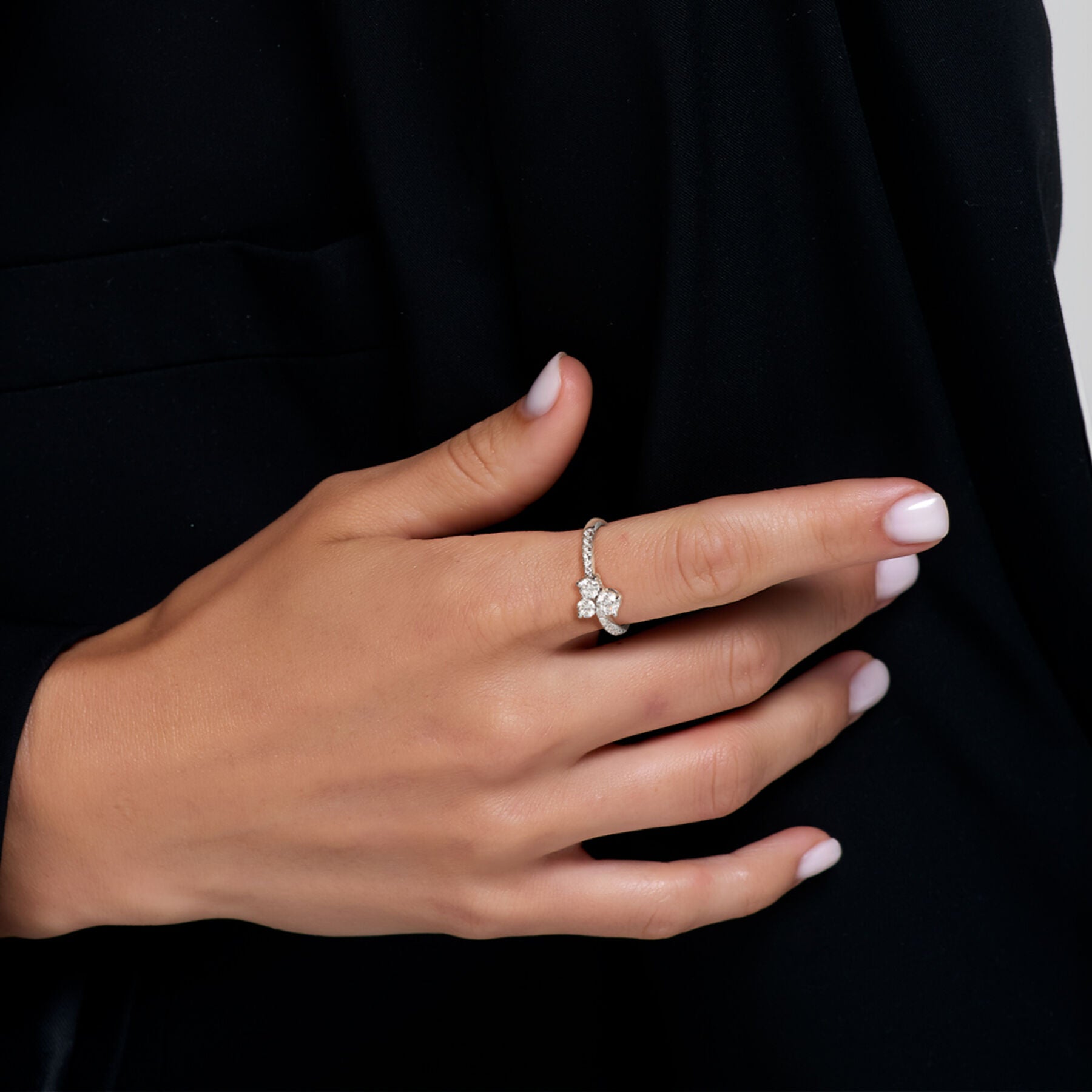 18K white gold ring, diamond color GH, clarity SI 0.67 ct, 15 stones