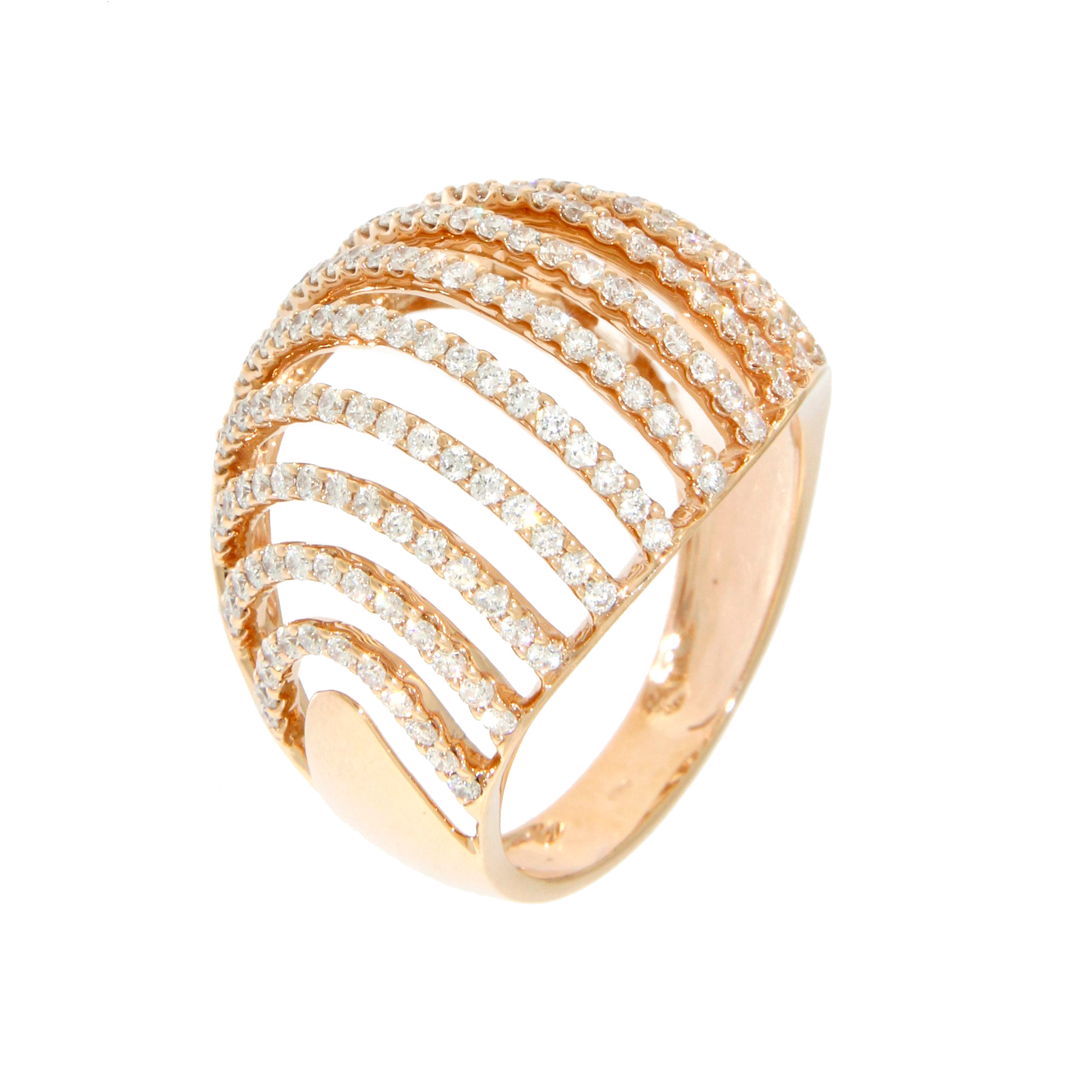 18K rose gold ring, diamond color GH, clarity SI 1.17 ct, 172 stones