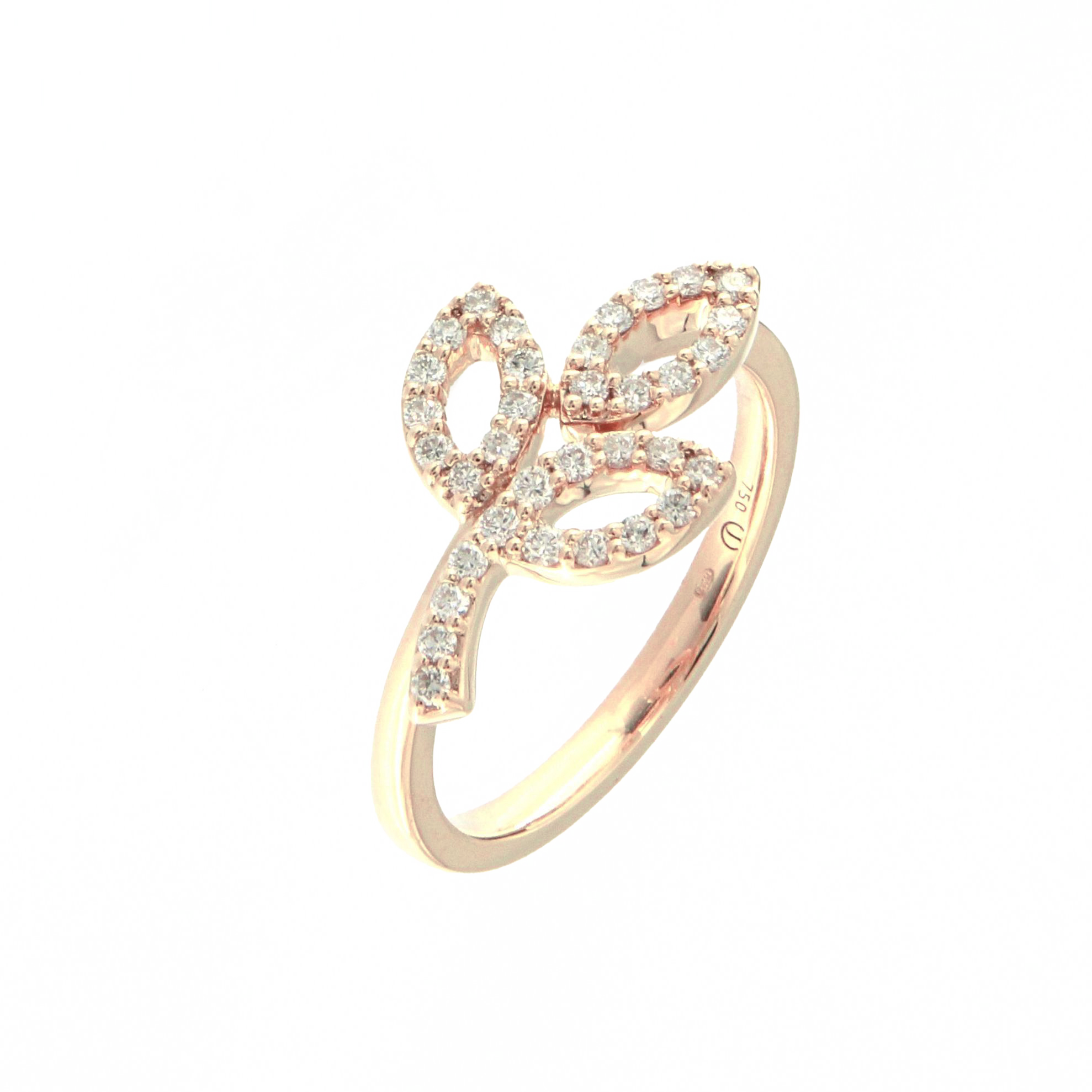 Collection Leaves and crossed Ring Gold, Diamond 0.30 ct, designer