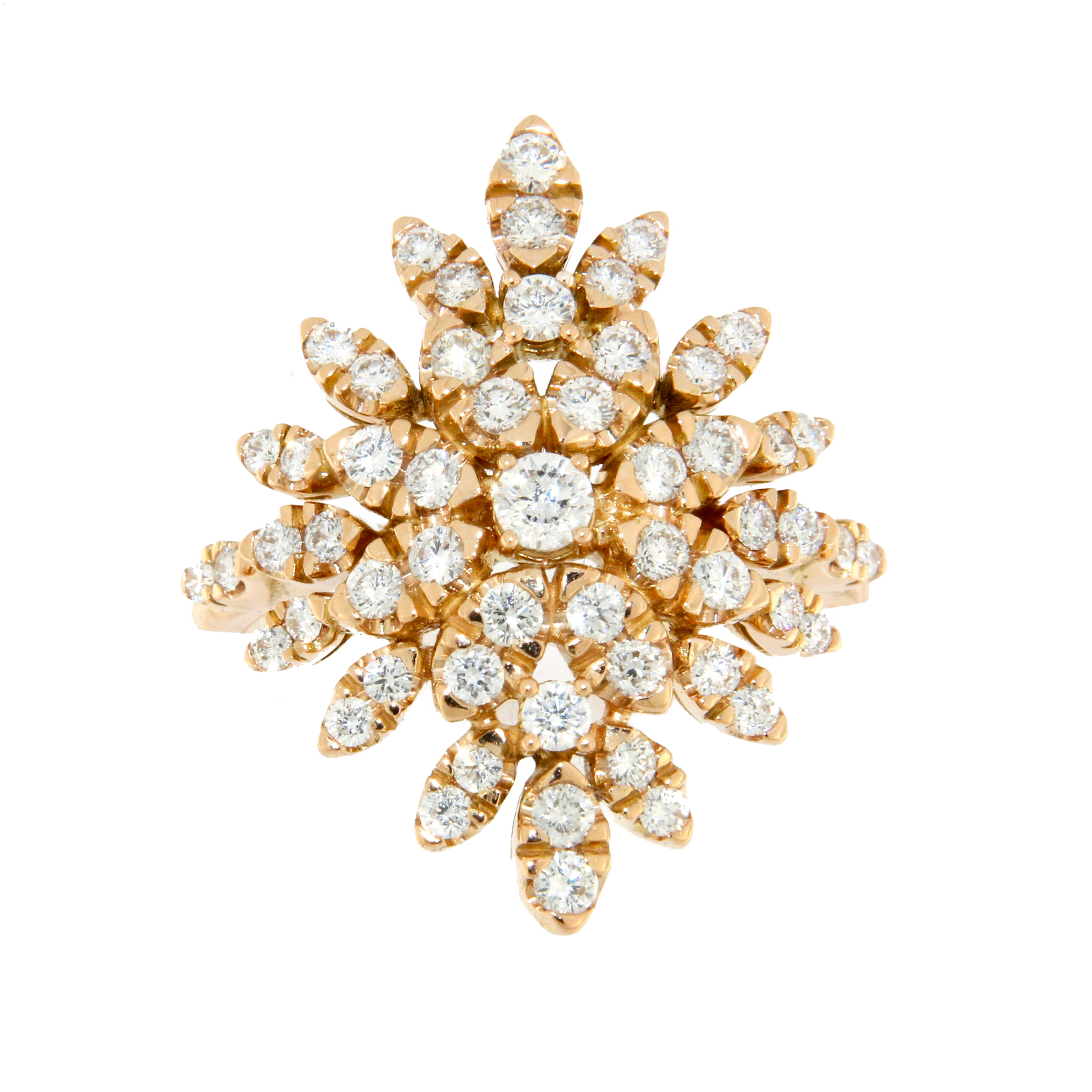 18K rose gold ring, diamond color GH, clarity SI 1.10 ct, 55 stones