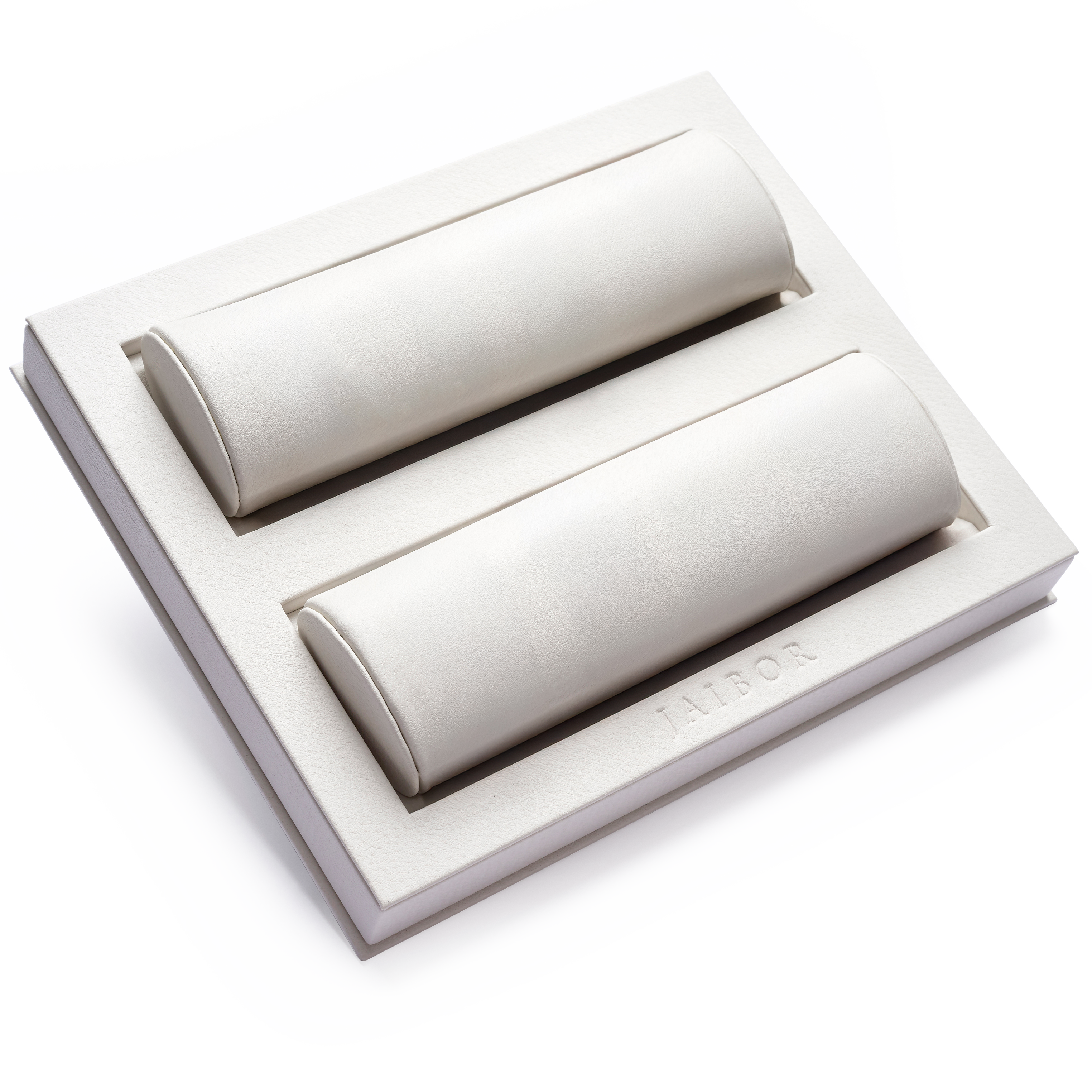 Bracelets tube starter pack 3 cm high by 26cm wide x 19cm deep, beige velvet. We recommend a maximum of 8 bracelts per tube.