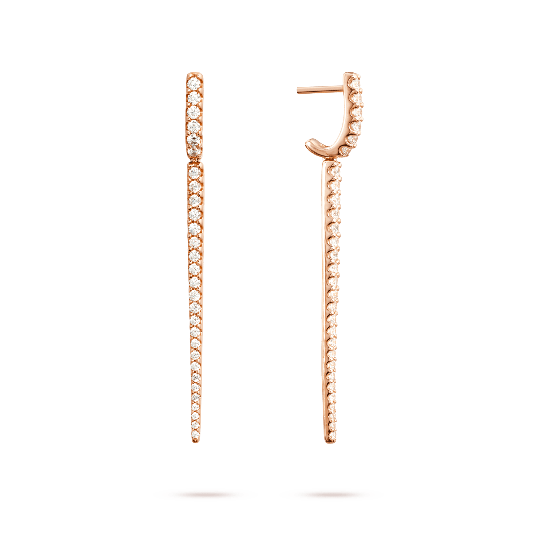 18K rose gold earring, diamond color GH, clarity SI 0.95 ct, 58 stones, pressure clasp