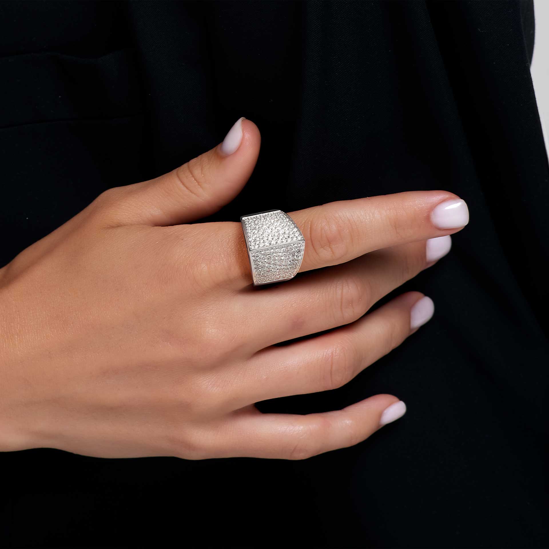 18K white gold ring, diamond color GH, clarity SI 2.18 ct, 166 stones