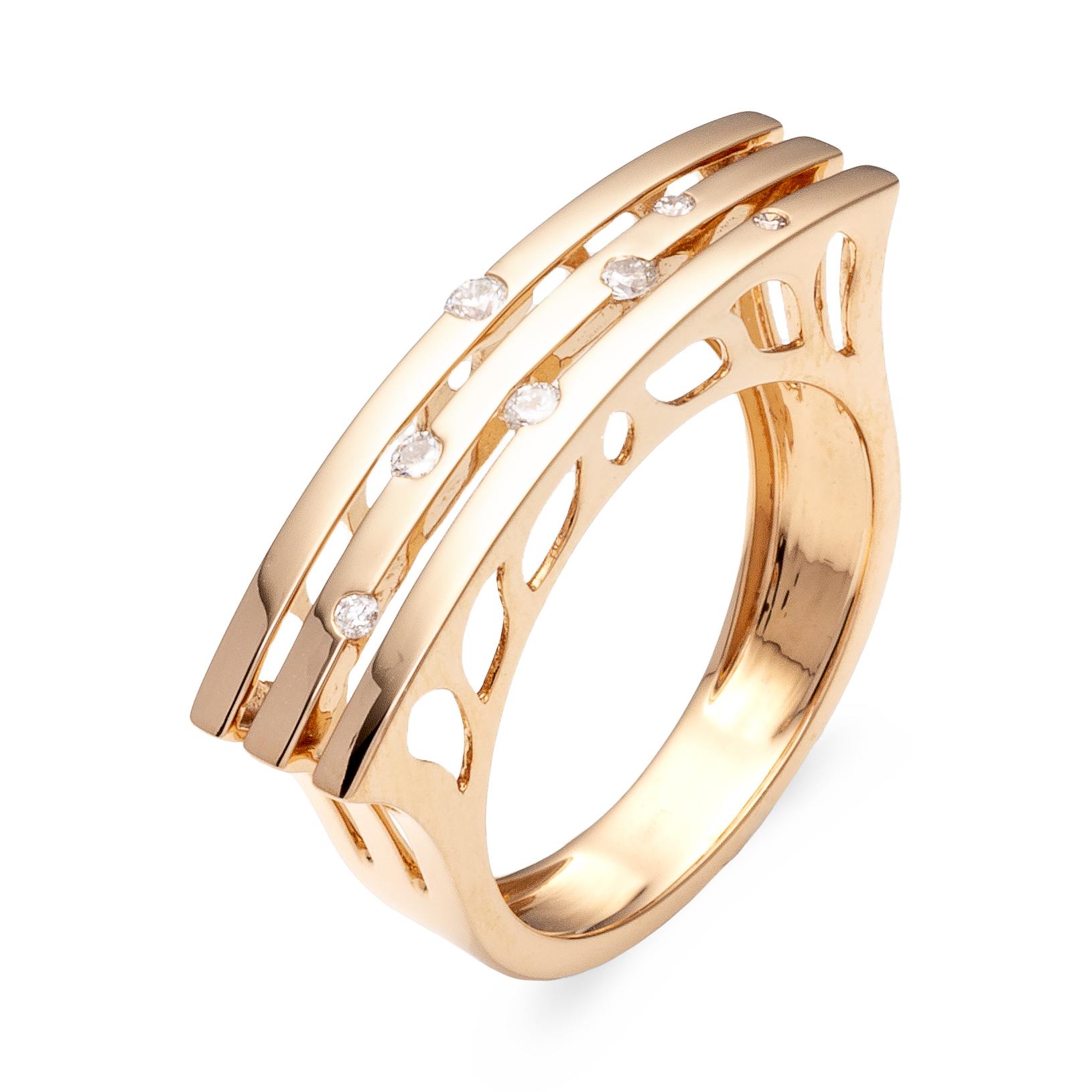 18K rose gold ring, diamond color GH, clarity SI 0.13 ct, 7 stones