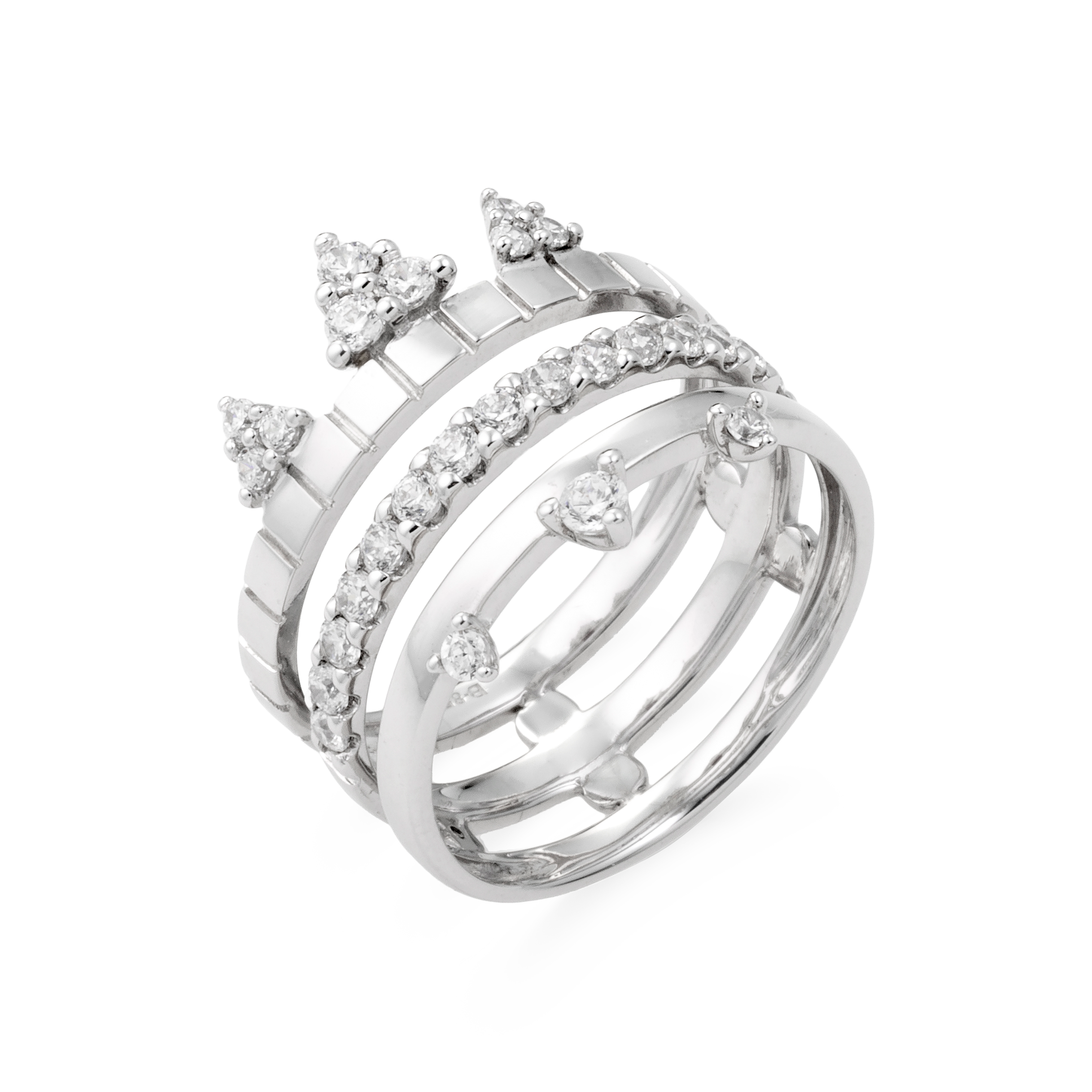 18K white gold ring, diamond color GH, clarity SI 0.02 ct and diamond color GH, clarity SI 0.40 ct, 31 stones
