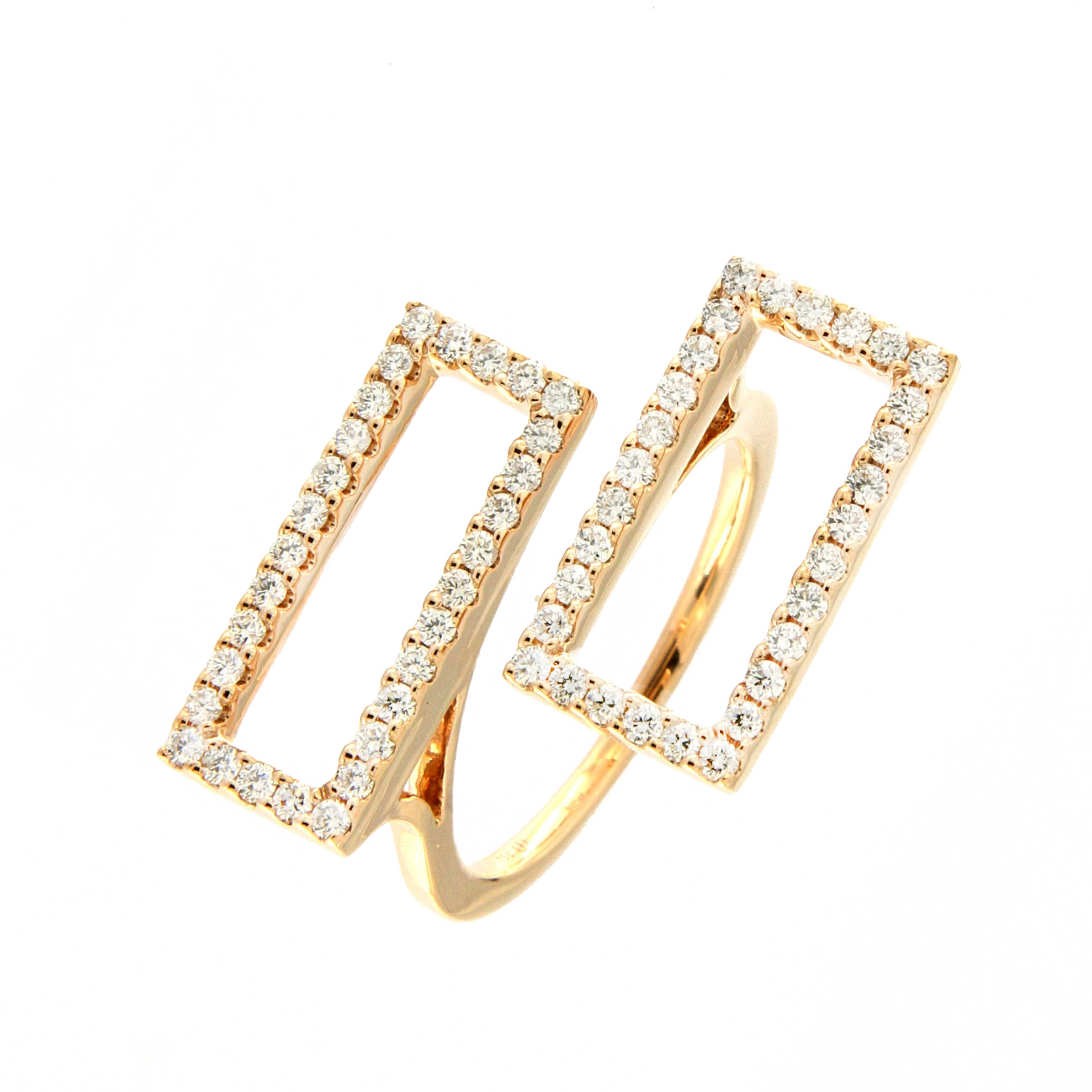 18K rose gold ring, diamond color GH, clarity SI 0.61 ct, 60 stones