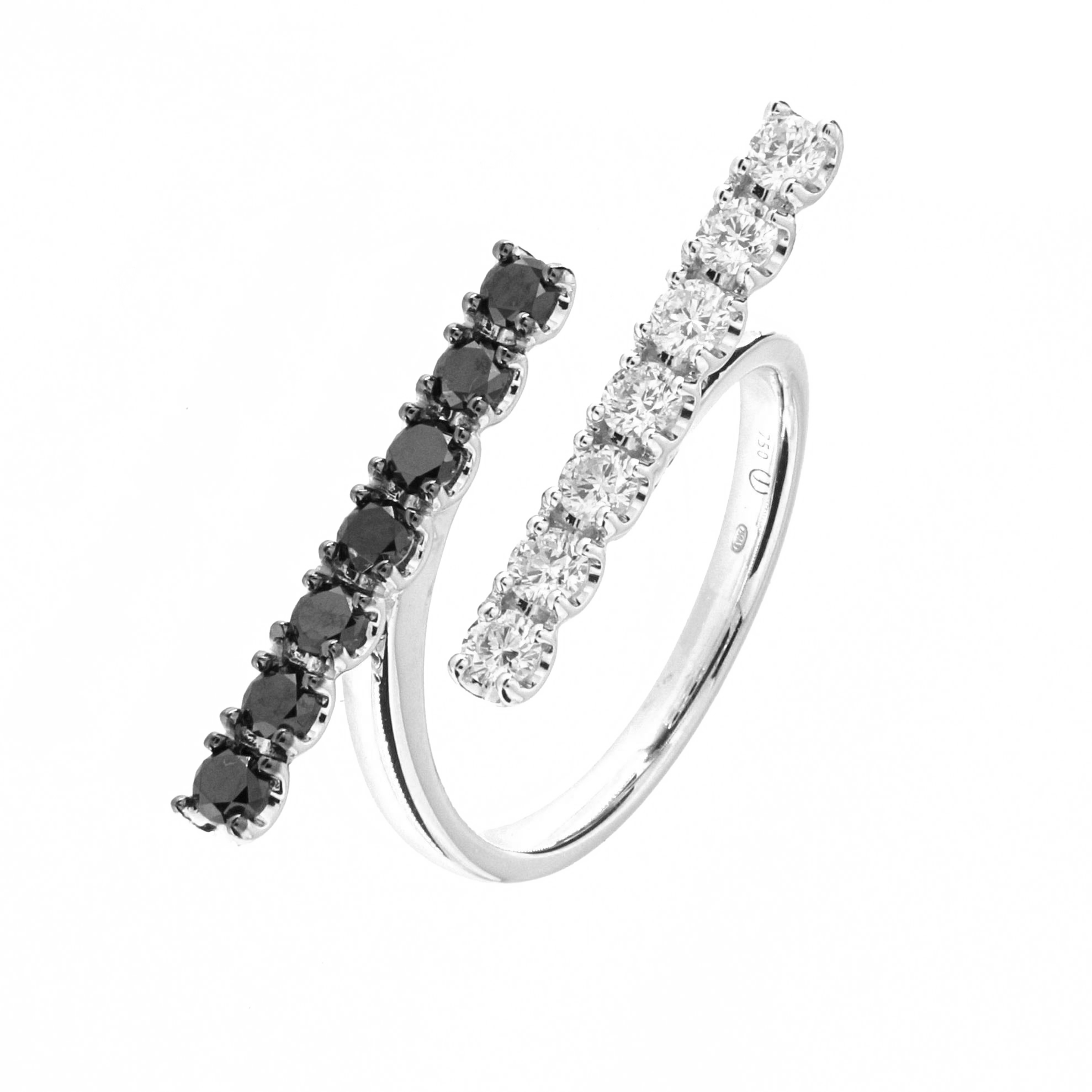 18K white gold ring, diamond color GH, clarity SI 0.46 ct and black diamond 0.46 ct, 14 stones