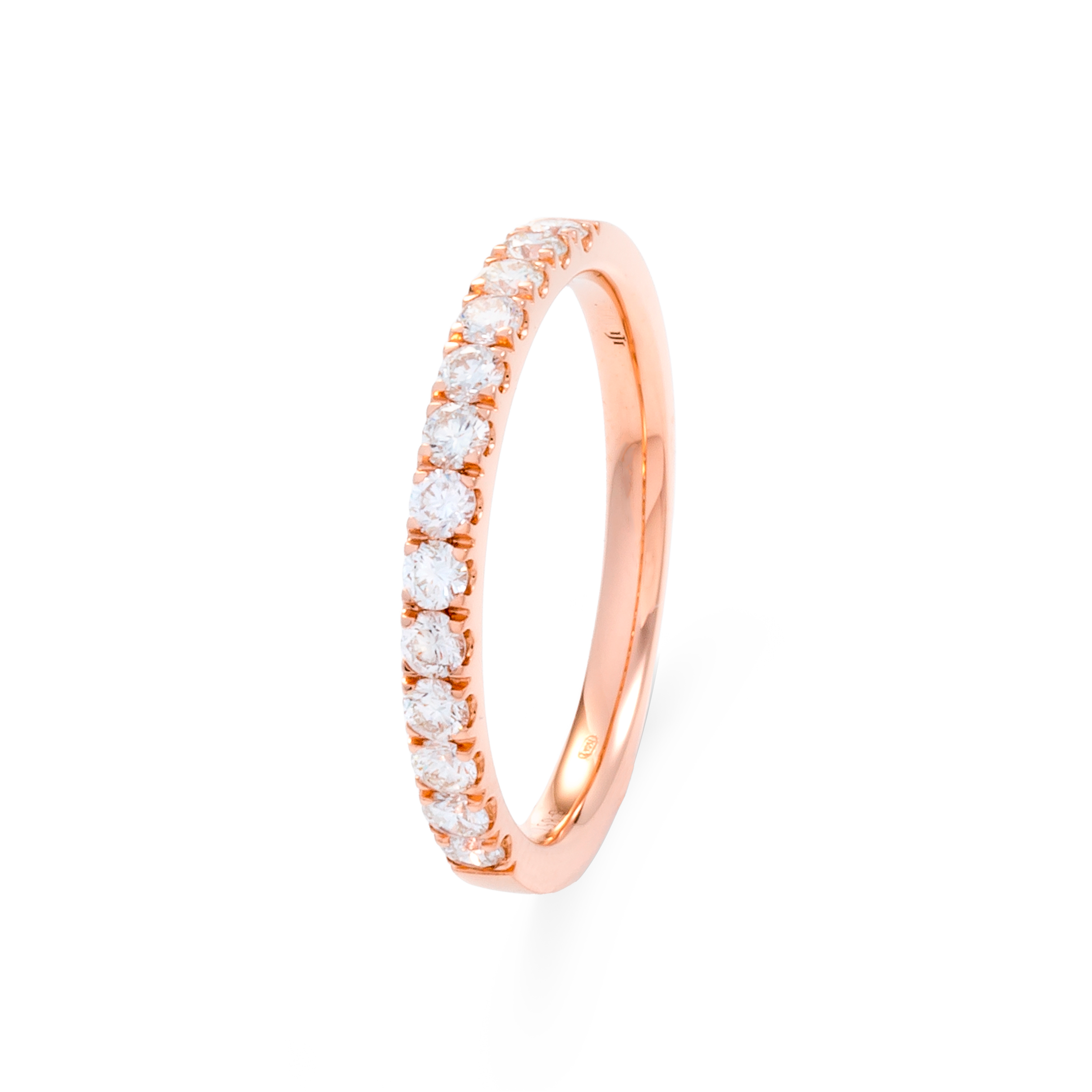 18K rose gold ring, diamond color GH, clarity SI 0.44 ct, 13 stones