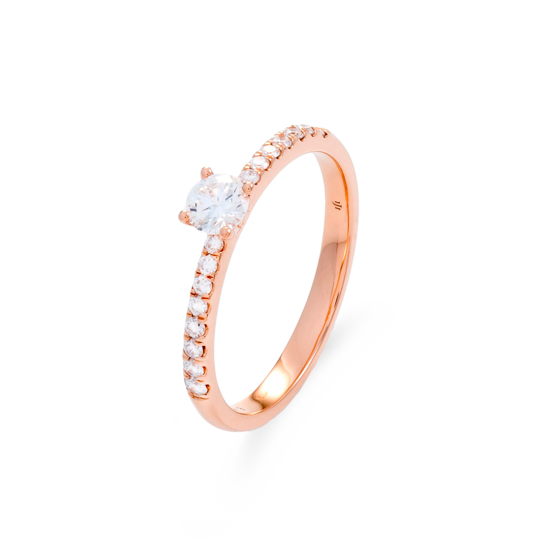 18K rose gold ring, diamond color GH, clarity SI 0.32 ct, 17 stones