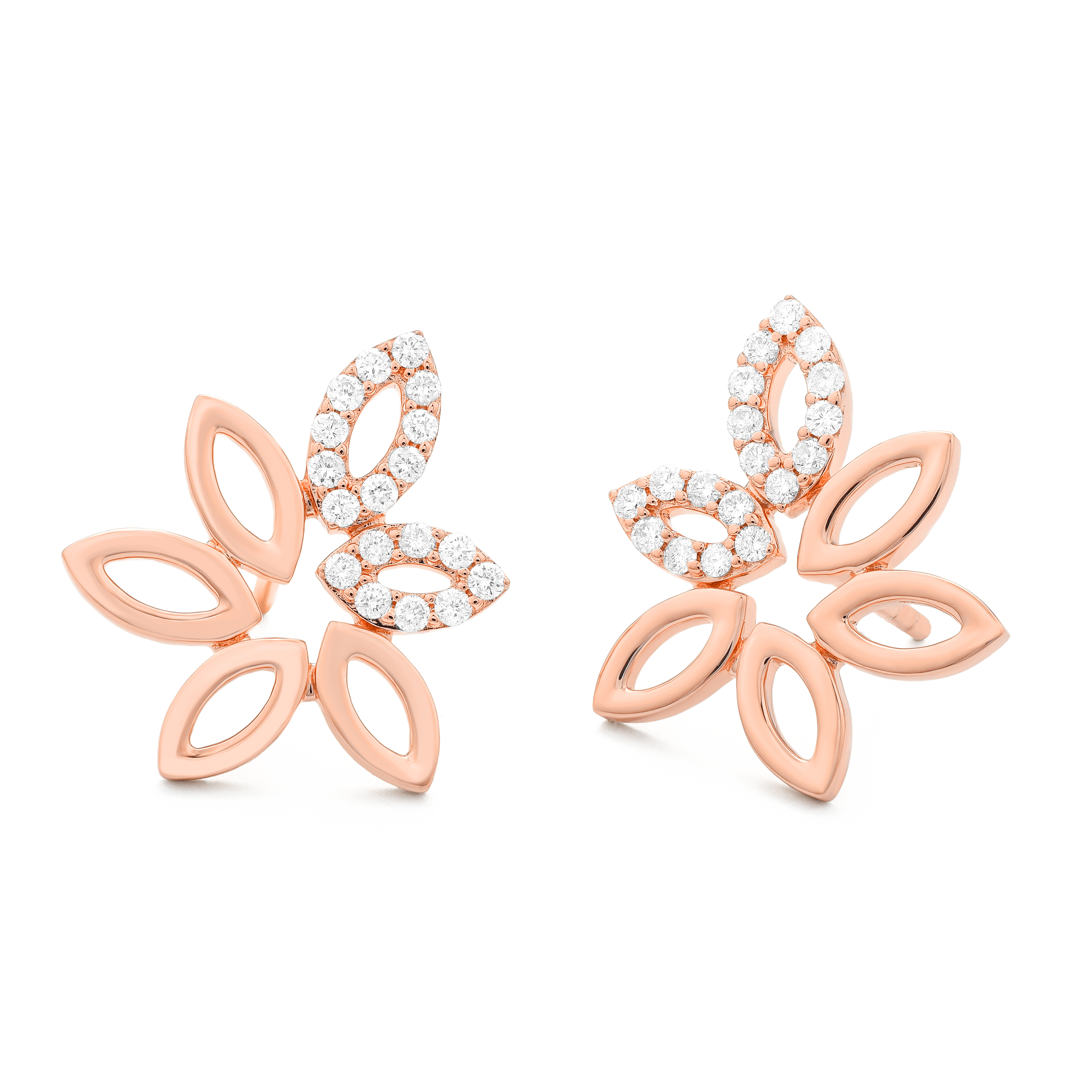 Collection Leaves and crossed Earring Gold, Diamond 0.36 ct, climbers