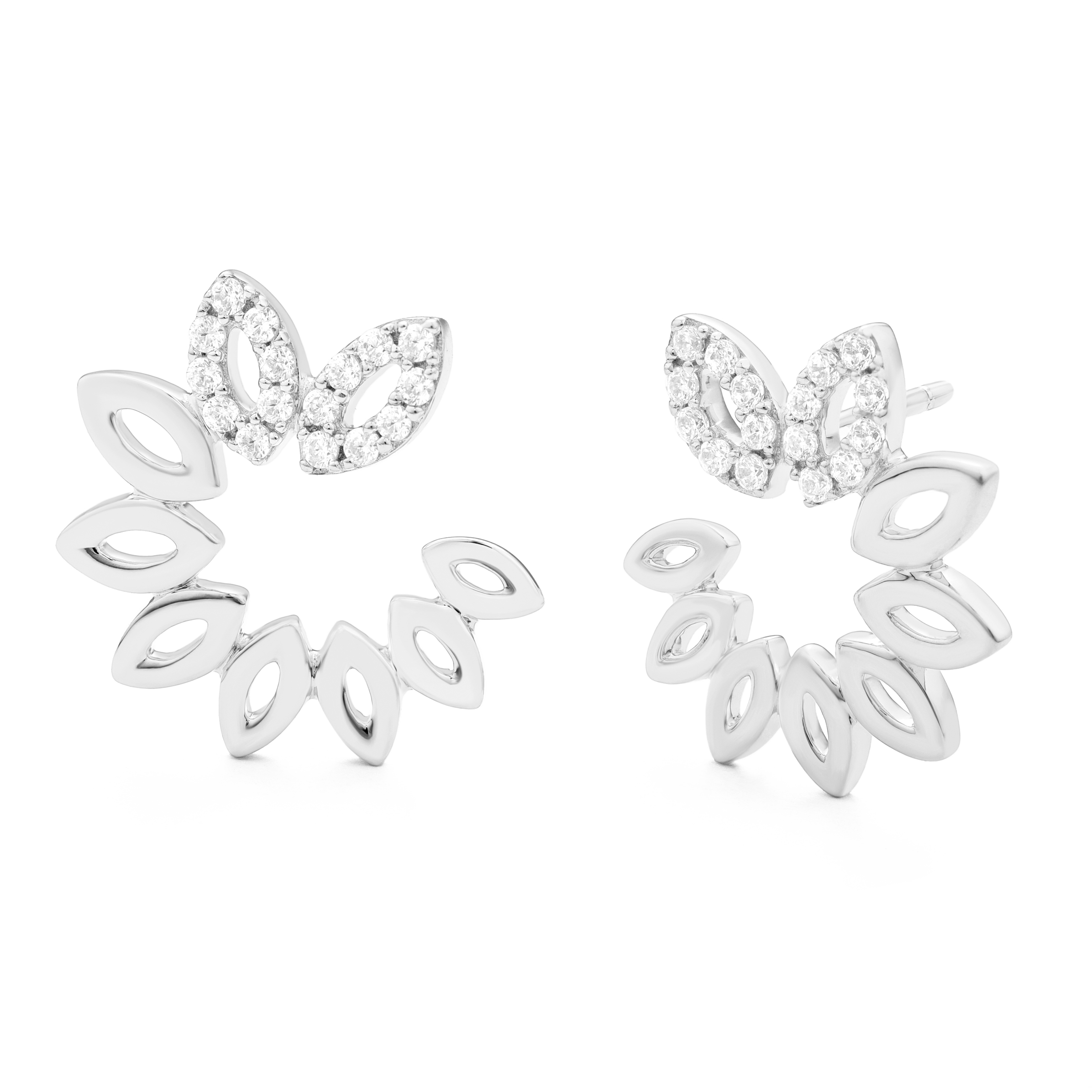 Collection Leaves and crossed Earring Gold, Diamond 0.41 ct, climbers