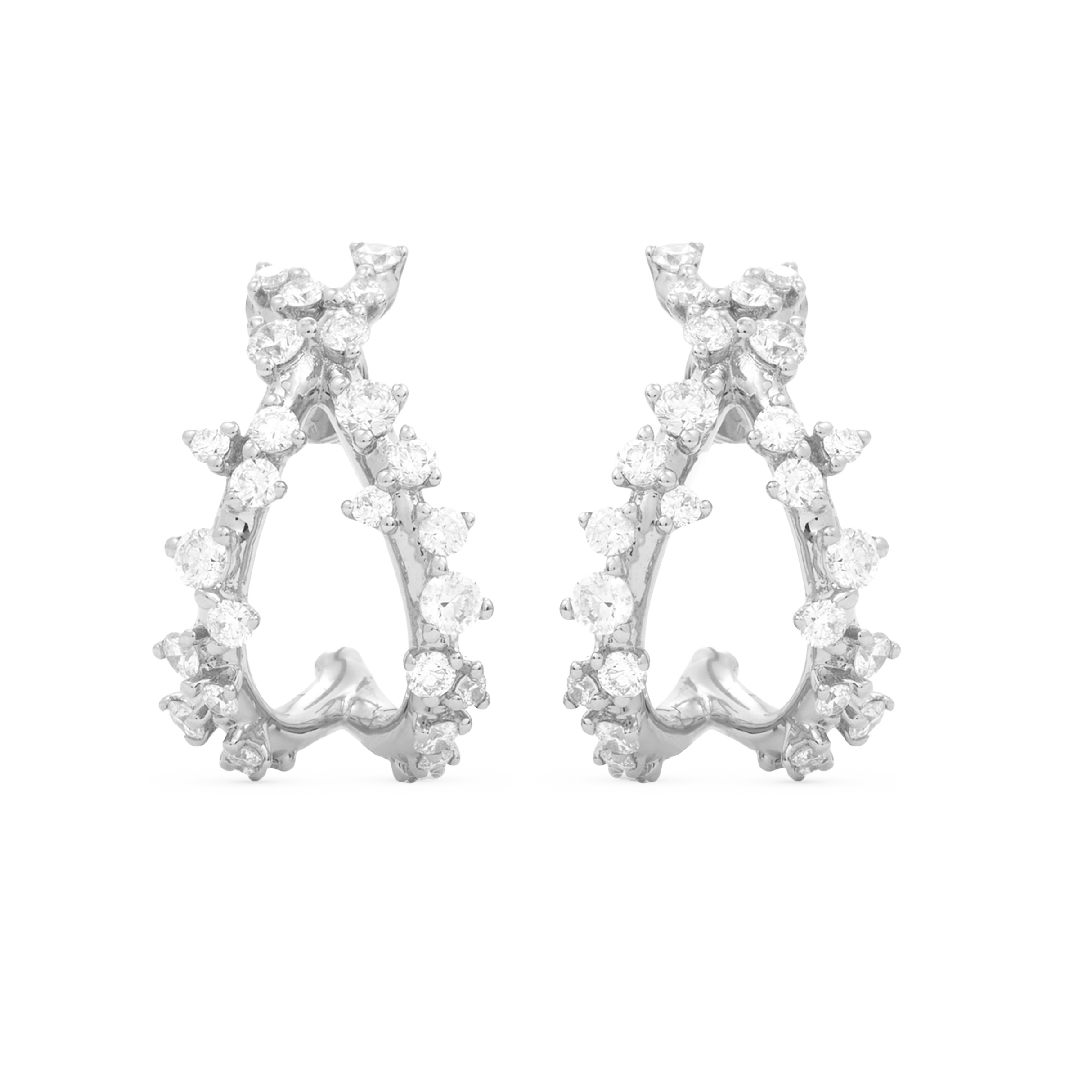 18K white gold earring, diamond color GH, clarity SI 0.68 ct, 54 stones, pressure clasp