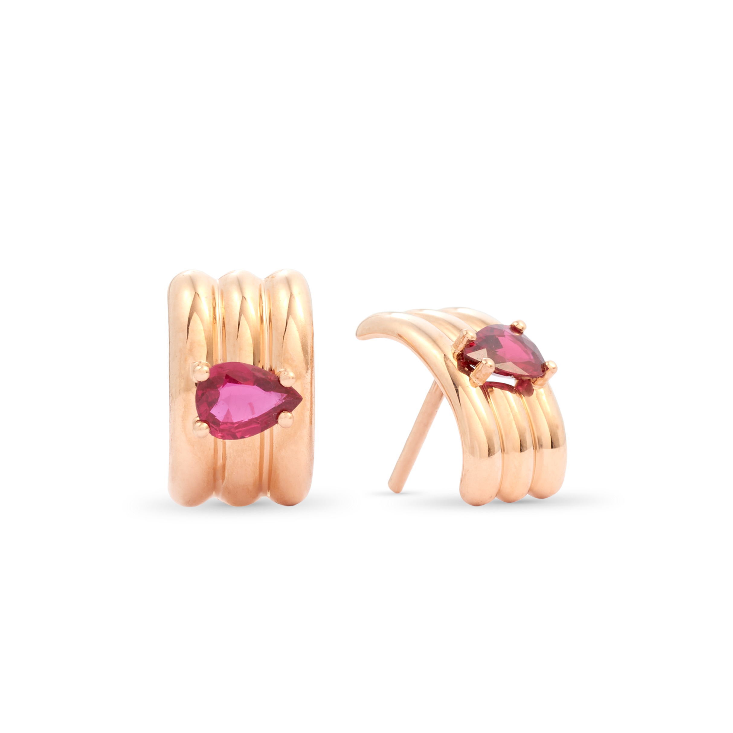 18K rose gold earring, ruby, pressure clasp