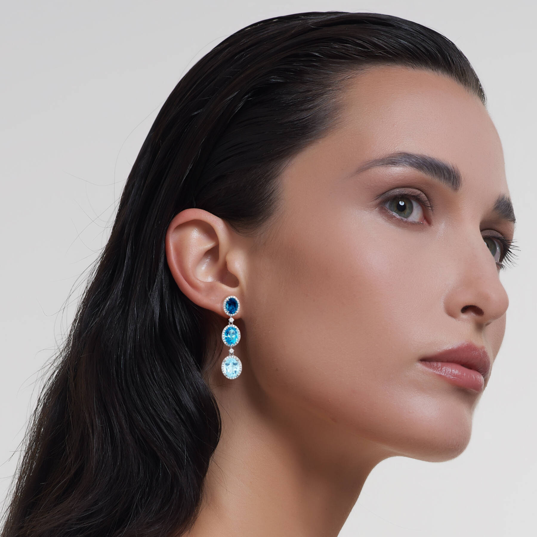 Collection Iconic Earring Gold, Diamond 0.78 ct, london blue and sky topaz, dangle